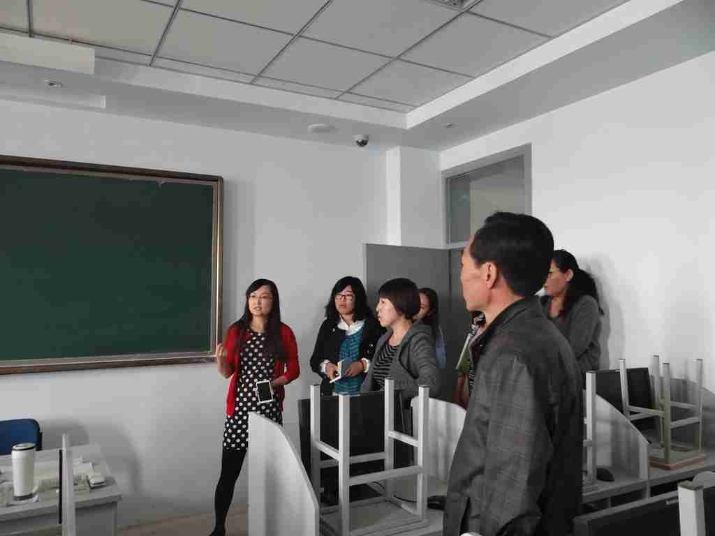 财经大学外国语学院张平院长、郝建军副院长先后发言,就外国语学院的概况、大学英语课程教学改革实施情况等 进行了介绍。一线骨干外语教师李超、包英华、娜和芽结合教学实际,介绍了自己在使用《新编大学英语基础教程 》中积累的宝贵经验,并就教学中采取的有效教学方法、成绩考核评价体系等问题与我系教师进行了深入交流与探 讨。随后,一行十人深入课堂,听取了腾和老师的大学英语示范课,参观了语言训练中心、双语计算教学基地、自 主学习室及教师电子备课中心。此行是我系全面启动大学外语教学改革前进行的师资培训项目之一,必将对大学外 语课程教学改革的顺利实施起到积极的推动作用。