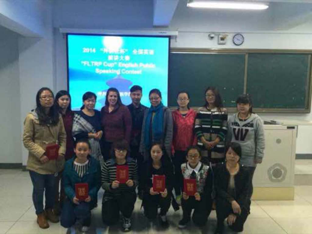 2014年10月15日晚7点,外语系在新教学楼602教室举办了2014年度“外研社杯”全国英语演讲大赛beat365英国官方网站初赛。本次比赛由外语系公共外语教研室和外语系团总支共同承办,全院学生踊跃参加,比赛场面热烈激扬。大赛通过定题演讲形式选拔出10名选手进入即兴演讲和综合知识问答环节。比赛中,选手们尽显英语演讲的魅力,以标准的英语发音、出色的口语表达、扎实的语言基本功、突出的应变能力征服了评委和观众。经过三个小时的激烈角逐,最终评选出一等奖1名,二等奖2名,三等奖3名。外语系2014级小学英语教育2班的袁静同学荣获本次大赛一等奖。