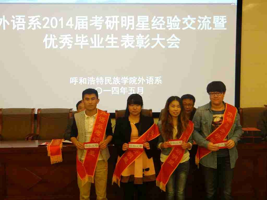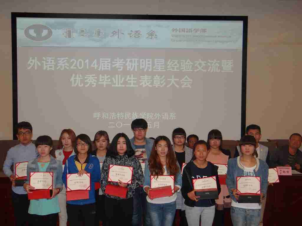 外语系于2014年5月13日晚,在学院图书馆一楼报告厅举行了2014届考研明星经验交流暨优秀毕业生表彰大会。