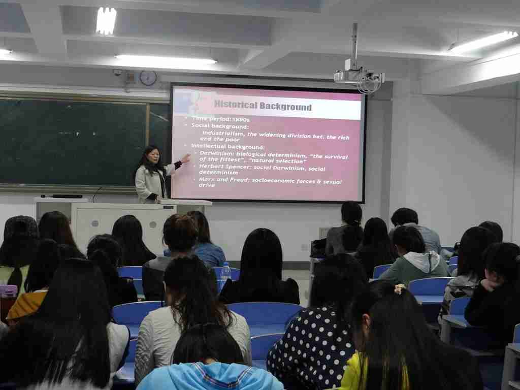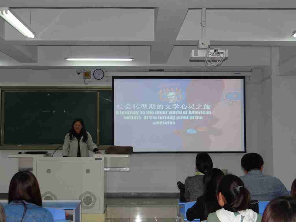 朱小琳教授举重若轻,以轻松诙谐的语言向我们娓娓道出美国早期口头文学、儿童文学、美国族裔文学和美国女性文学的瑰丽之处。让师生了解到美国文化历史知识,领略到美国文学作品的魅力,引发出对人生的深层次思考。