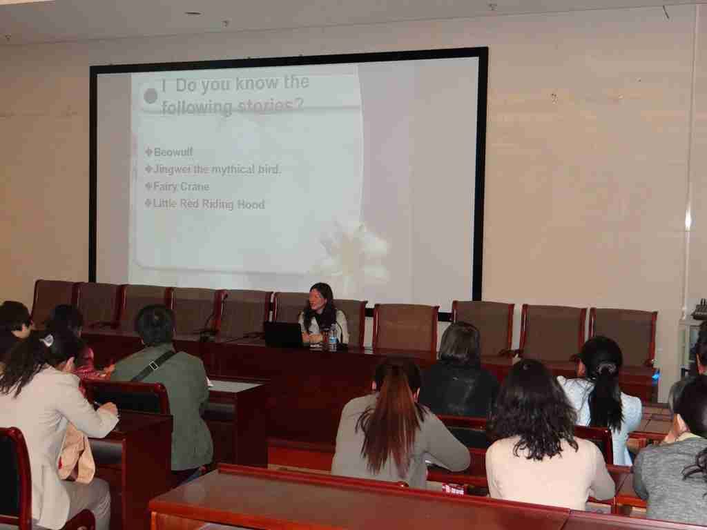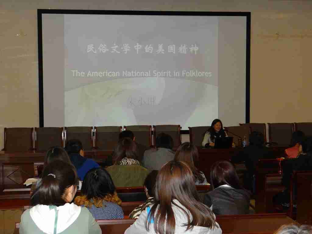 2014年5月6日至8日,中央民族大学外国语学院英语系主任、硕士生导师朱小琳教授赴我系讲学,先后为师生奉上题为《民俗文学中的美国精神》、《社会转型期的文学心灵之旅》和《蓝袜子沙龙:美国女作家的文艺之路》三场精彩讲座。