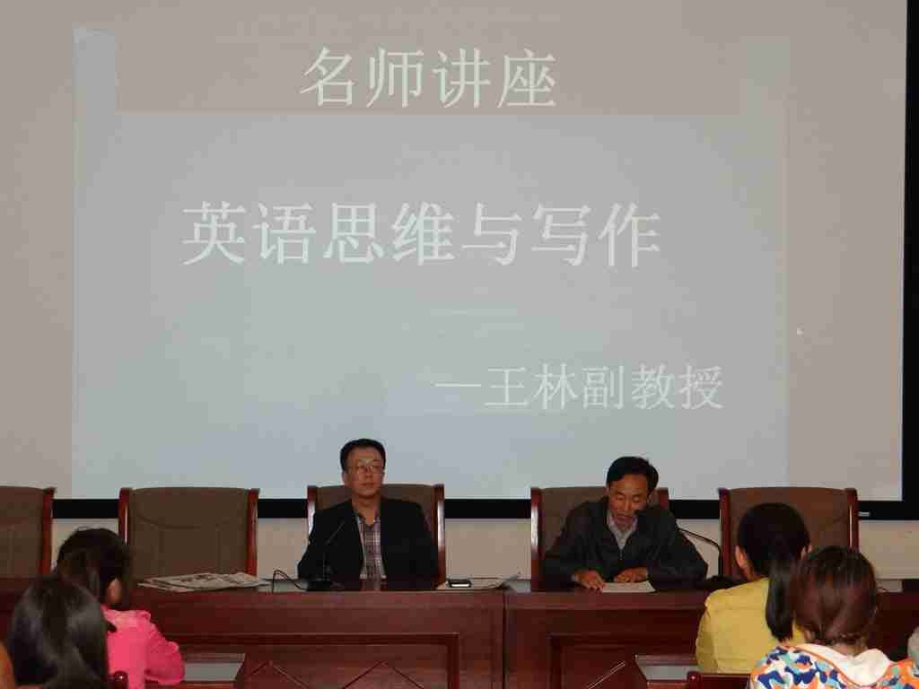2014年5月26日至5月28日,中央民族大学外国语学院史学博士、硕士生导师王林副教授来我系讲学。他先后为广大师生奉上了题为《英语思维与写作》、《英语语音和语法的规律》、《英语翻译与技能》三场内容各异的讲座。