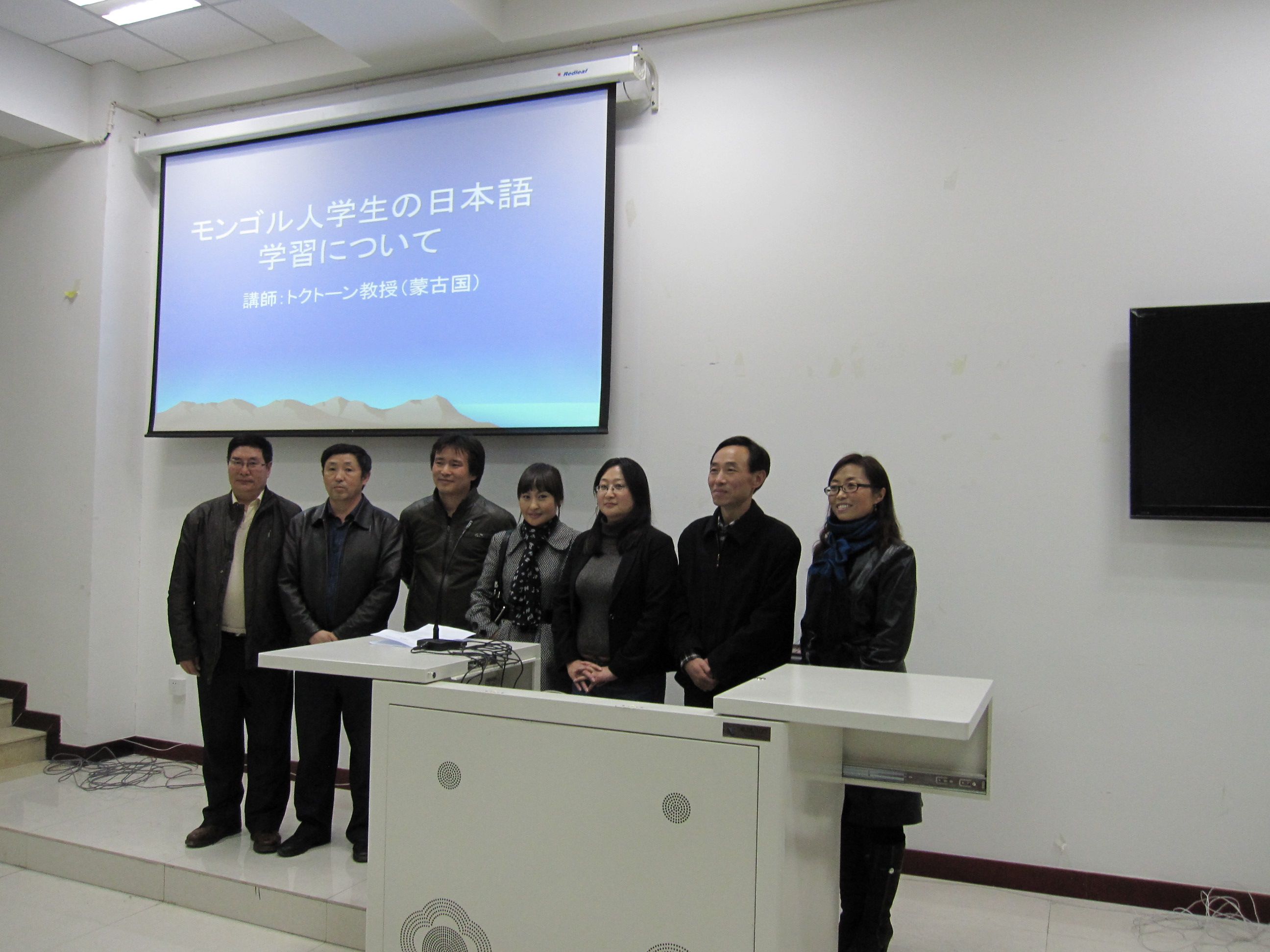 为了提高日语专业师生专业水平,活跃学术交流,2013年11月6日下午4:30—6:00,外语系邀请蒙古国国立大学蒙古语言文化学院外语系Erdenesan Togtuun教授在教学楼106教室为日语专业师生做了题为《蒙古语授课学生日语学习策略》的学术讲座。日语专业教师及日语专业蒙古语授课班学生100多人收听了讲座。
