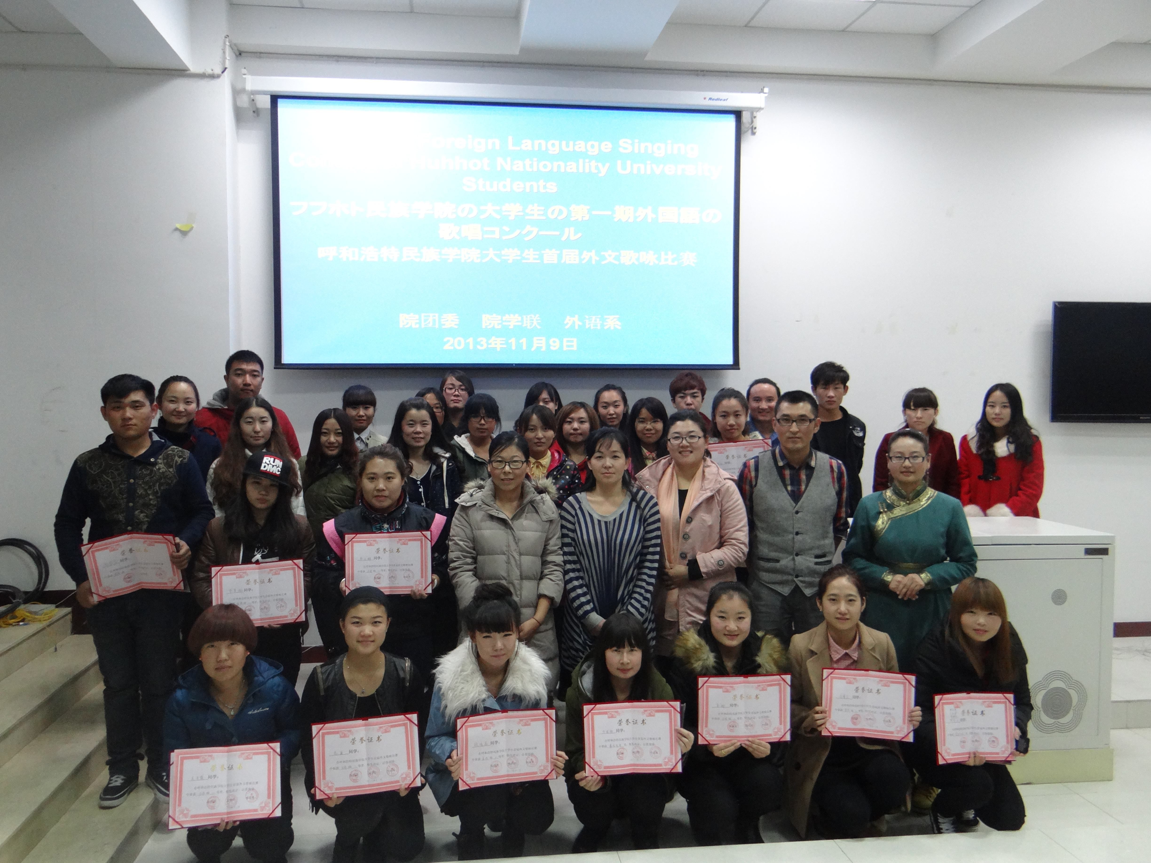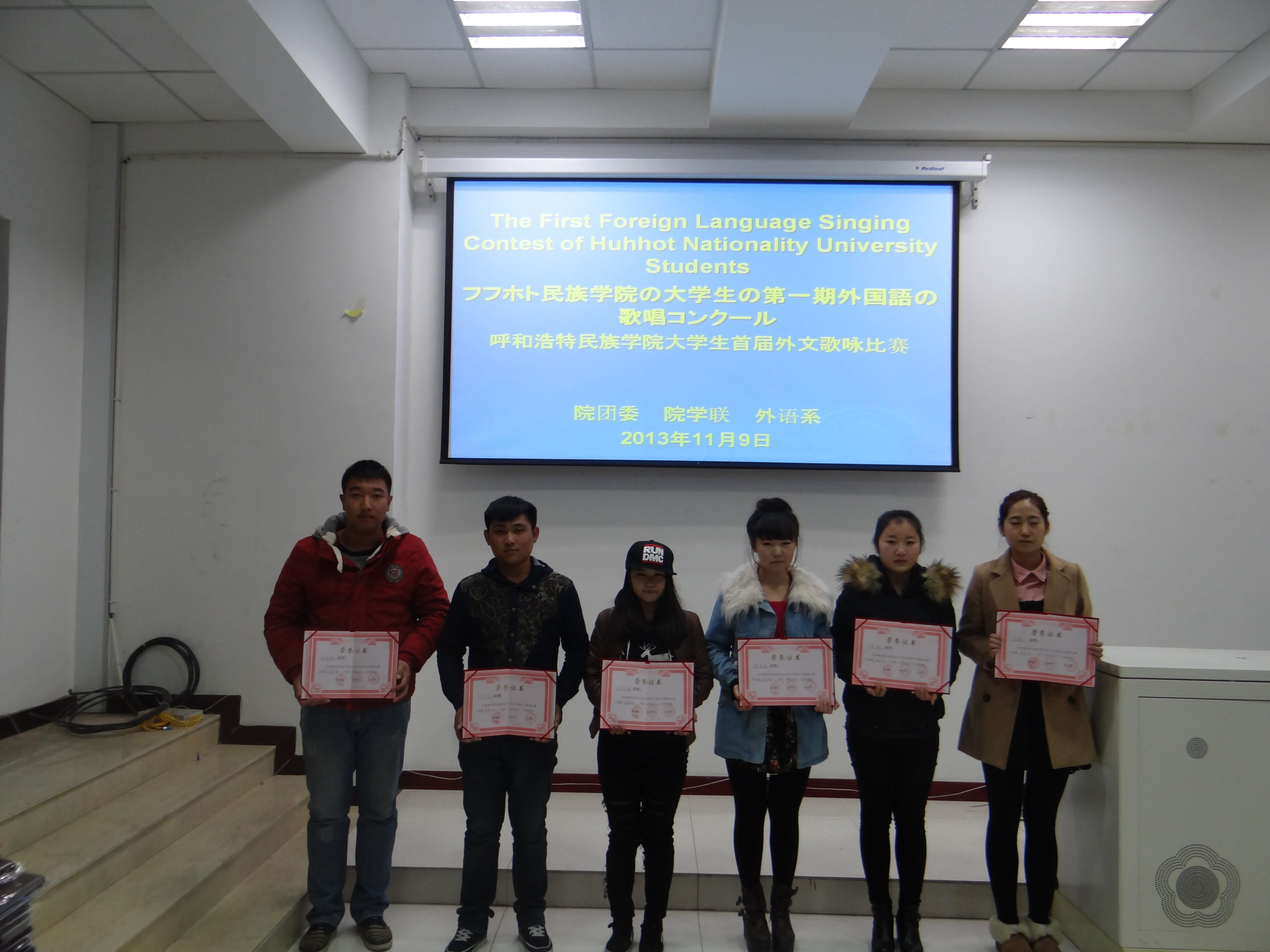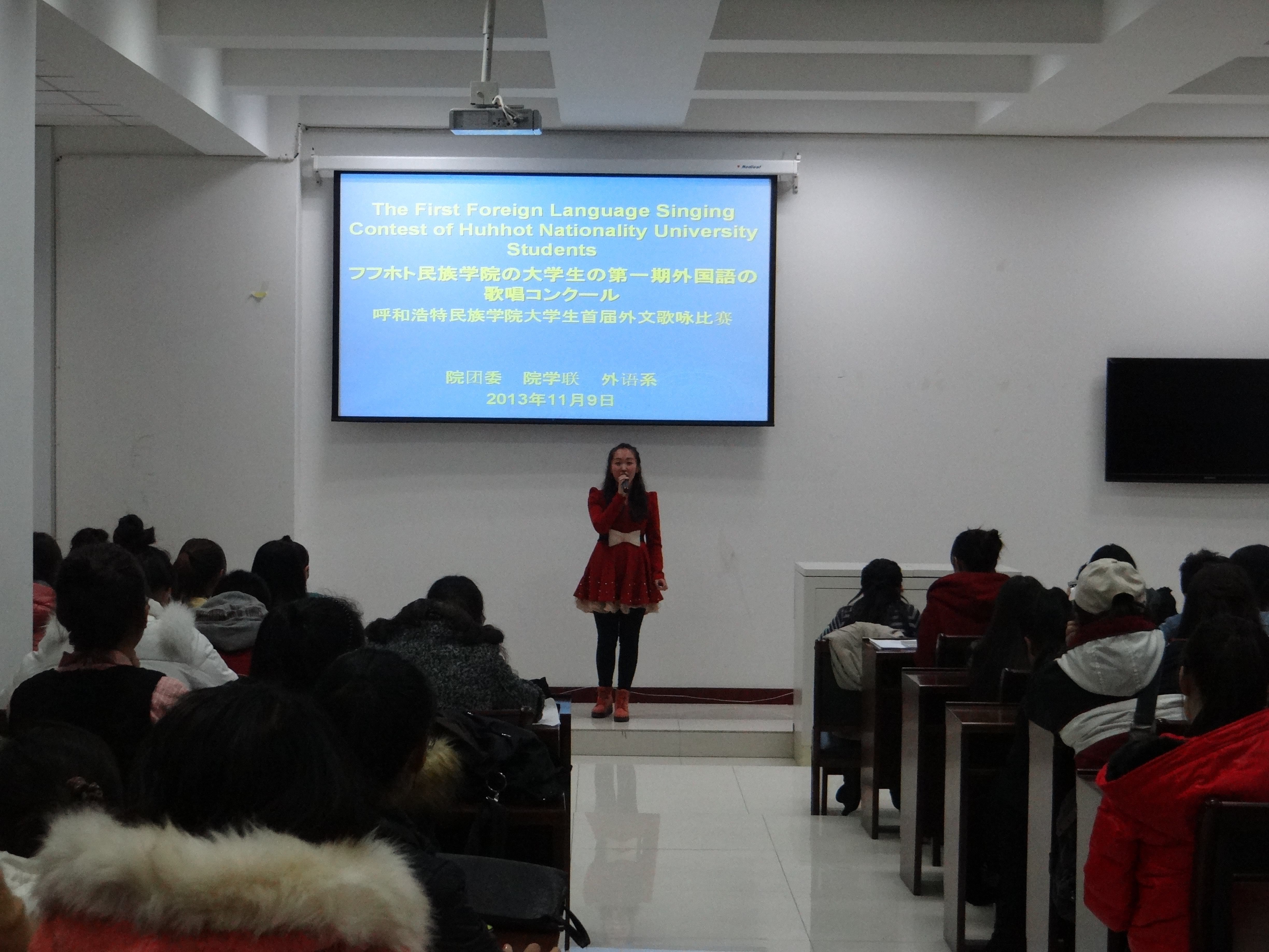 为调动全院学生学习外语的积极性,营造良好的外语学习氛围,由学院团委和外语系联合组织,外语系承办的beat365英国官方网站首届外文歌曲大赛于2013年11月9日晚七点半在新教学楼106教室激情上演。因报名参赛人数较多,大赛经过海选,最终28名同学杀入决赛。决赛中,学生们优美的歌喉、精准的外语发音、个性彰显的台风,尽显我院大学生朝气蓬勃、积极向上的精神面貌。经过三个小时的激烈角逐,教育系包宝龙、外语系陈倩茹等同学斩获英语组一、二、三等奖,外语系杨晓彤等同学获得日语组一、二、三等奖。此外,比赛还产生了最佳发音奖、最佳台风奖和最高人气奖。