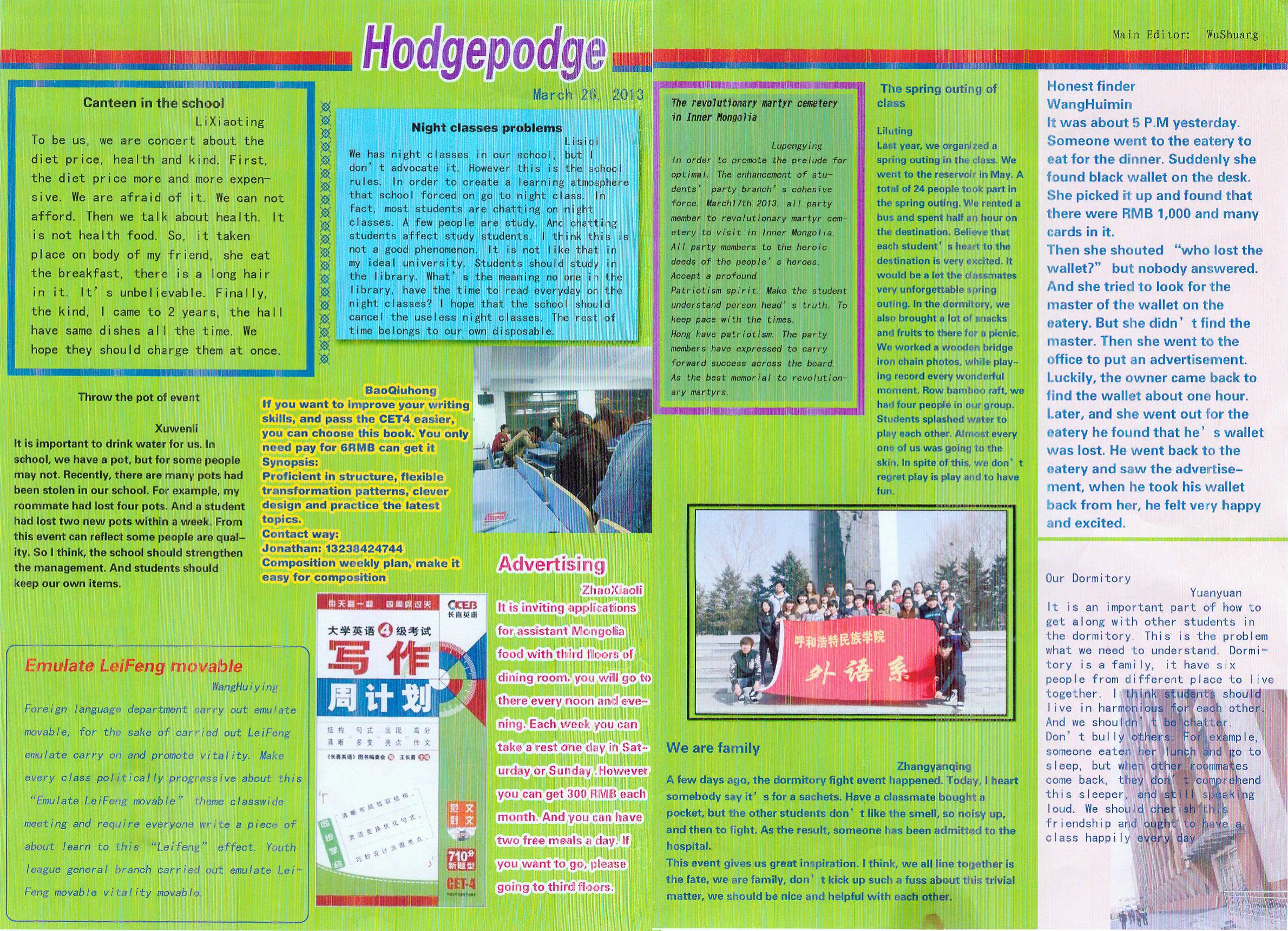 英语专业学生创办的英语写作实践小报