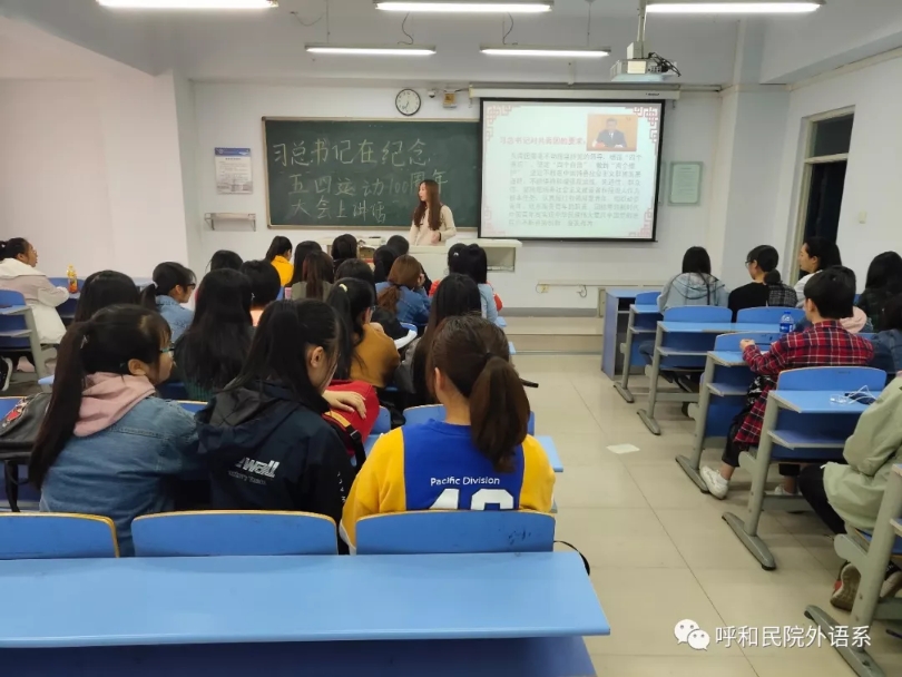 不忘初心跟党走,牢记使命献青春。为高举习近平新时代中国特色社会主义思想伟大旗帜,全面贯彻五四精神。2019年5月14日,外语系社团组织社团成员于都林楼607组织“纪念五四运动一百周年”理论学习活动。