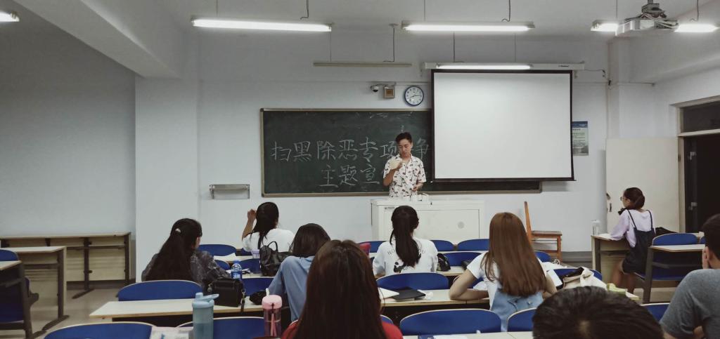 为加强扫黑除恶专项斗争宣传力度,防范黑恶势力进入校园,进一步增强师生的安全意识、法律意识和自我防护能力,净化校园政治生态,保障全校师生的生命财产安全,确保教育教学工作顺利进行,6月17日,外国语学院团总支组织2018级全体学生在都林楼六楼开展了扫黑除恶专项学习活动,重点学习了《扫黑除恶宣传手册》,助力扫黑除恶知识入心入脑。