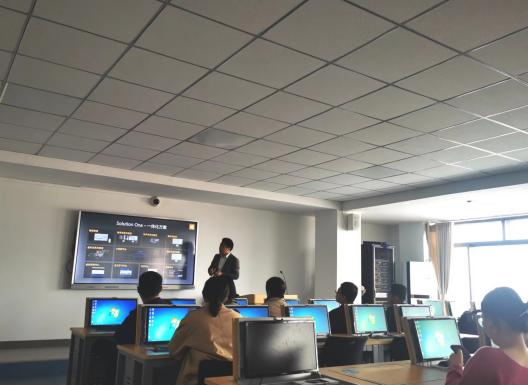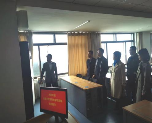 红梅副书记陪同公安管理石丽荣主任一行先后参观了我院的三个智慧教室。在随后召开的座谈中,红梅副书记向一行人介绍了我院总体情况及智慧教室体系化建设情况,分享了智慧教室在大学外语教学、学生自主学习中所起到的积极作用。次后,内蒙古云图教育咨询有限公司、北京外研讯飞教育科技有限公司、南京词酷网络信息技术有限公司、上海凌极软件有限公司就智慧教室建设与应用、教学资源管理、课程资源建设、信息化考务等方面做了专题汇报。