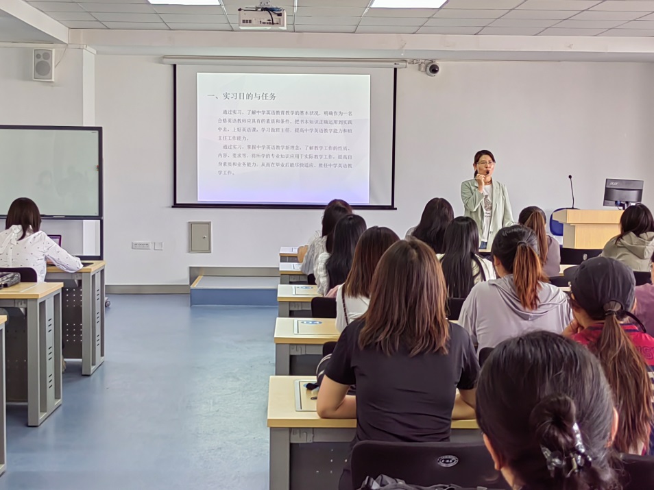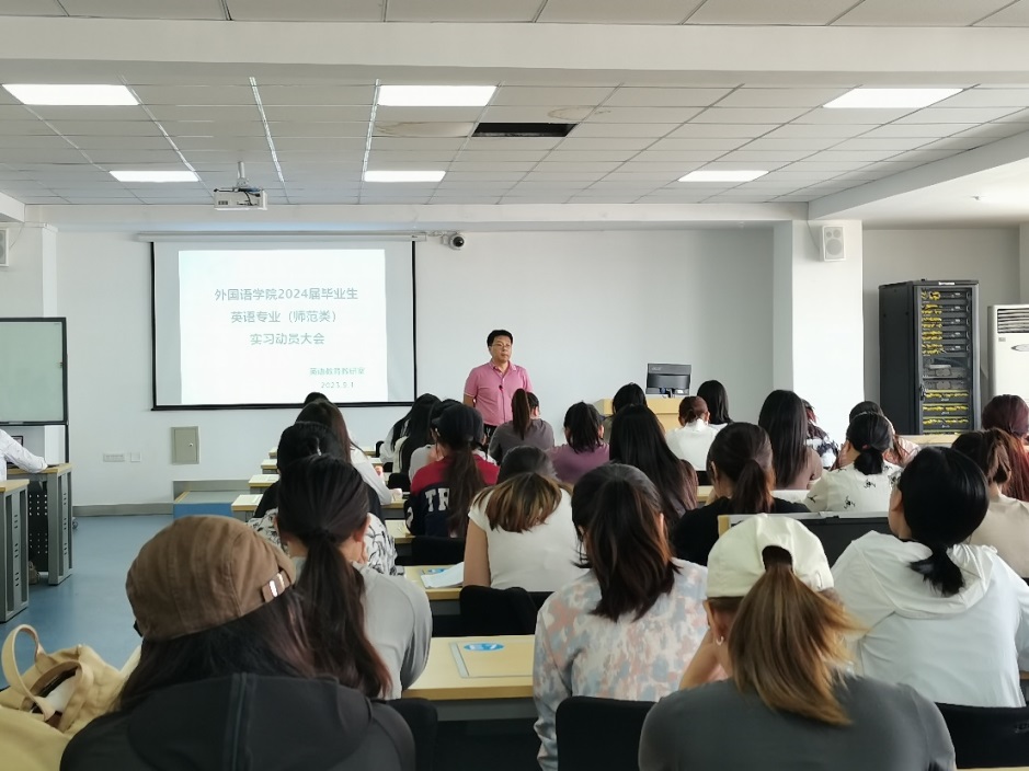 9月1日,外国语学院英语专业学生教育实习动员大会在都林楼606智慧教室顺利召开。会议由英语教研室主任乌优老师主持,学院副院长秦红喜、实习生指导教师代表萨仁格日乐老师、包丽娜老师应邀出席,外国语学院20级英语专业全体同学参加。