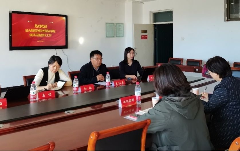 10月19日下午,包头师范学院外国语学院院长赵阿茹娜一行来我院调研走访交流,外国语学院副院长秦红喜及相关人员参加了调研活动。