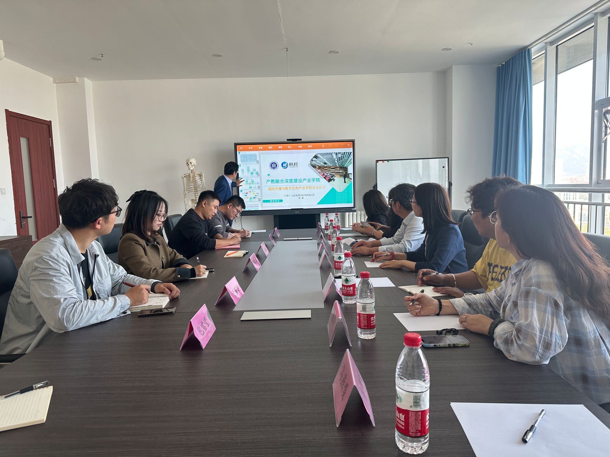 25日上午,调研组一行的调研活动在山东恒邦科技开发有限公司创新创业产学基地举行。调研团队与恒邦公司的杨鹏总经理与公司代表就跨境电商、海外新媒体专业方向的校企合作事宜进行了深入的讨论,探讨了在产学基地的框架下校企合作的创新和创业机会。恒邦集团与调研团队分享了公司的愿景和合作机会。这次调研旨在寻求合作机会,以促进学生在创新和创业领域的发展。座谈会后,调研组一行看望了我院在恒邦实习的2024届翻译专业毕业生,了解学生实习和生活情况。