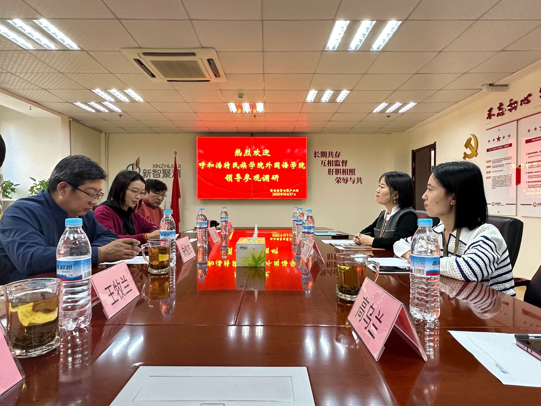2023年10月28日,beat365英国官方网站外国语学院党总支书记朱俊杰、副院长红鸽率领调研组一行前往山东省济南市国贸电商产业园,展开了学习调研活动。此次调研的目的是深入了解跨境电商行业企业的发展状况,未来趋势,以及企业对人才需求、学生实习和就业机会等方面的情况。同时,调研组还特别关注了高校英语及翻译专业学生在跨境电商和海外新媒体领域的就业前景。