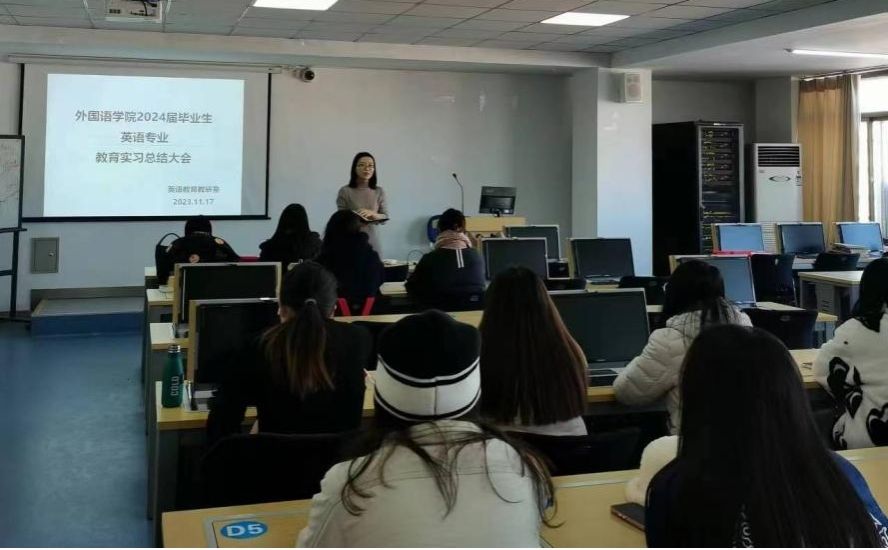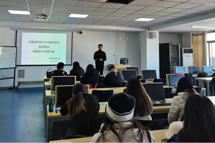 近日,外国语学院2020级英语专业(师范类)实习总结大会在都林楼606智慧教室召开。学院副院长红鸽、英语教育教研室主任乌优、实习指导教师乌日娜、包丽娜、涛歌及2020级全体英语专业(师范类)学生参加。