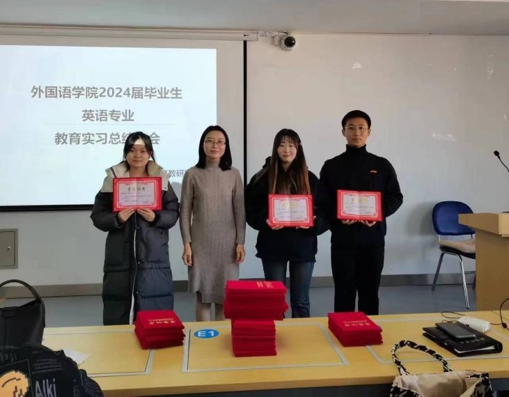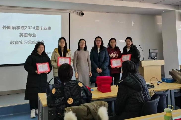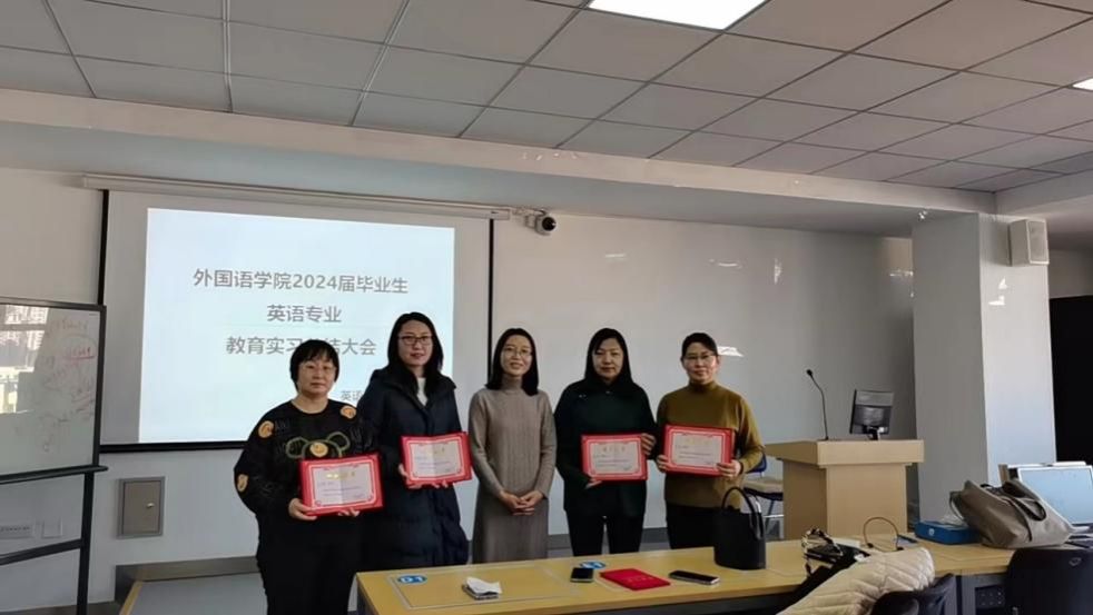 最后,学院表彰了实习中表现优异的13名实习生及5位实习指导教师。此次获评优秀实习生称号的13名学生由实习单位推荐,充分体现了实习单位对我院实习工作和实习生表现的高度认可,更是体现了我院英语专业(师范类)深化内涵建设,提升人才培养质量的实践成果。