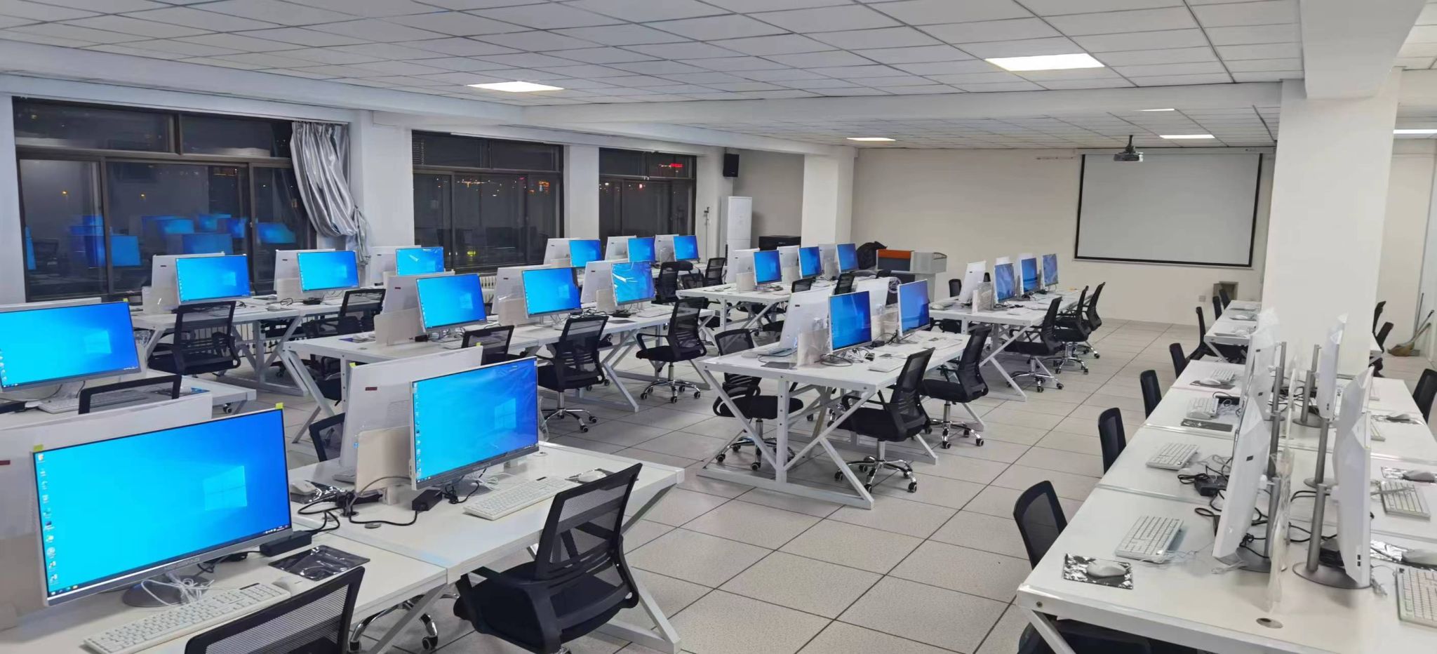 该实训室占地面积183平方米,机器配置了先进的i5和i7处理器/16GB内存/512闪存/独显/27寸护眼屏,学生和高校教师可用于日常海外传播营销、无人直播运营、跨境电商运营、产品开发,以及AIGC涉及到的相关软件工具的研发和实训使用,甚至像Stable Diffusion这样耗显存的AIGC软件也能在该实训室内顺畅运行,投入的设施和设备至少在五年内不会落伍。此实验室由山东恒邦科技提供设备以及先进的信息技术和软件资源支持、专业的培训资源和丰富的行业经验,为学生搭建了一个实战、实习实训的空间,为老师提供了全方位“校中企”的科研平台。实训室内除配备了最新的多媒体设备外,还搭建了企业自主开发的国际贸易海外独立站运营系统,跨境电商操作平台和无人直播系统等企业行业实际使用的软件产品,为学生提供了国际市场营销、海外宣传、贸易洽谈、跨境运营、直播运营、实时翻译、多语种翻译等环节的实操机会,AI面试辅导等辅助功能有助于提升学生的实践能力和就业竞争力。