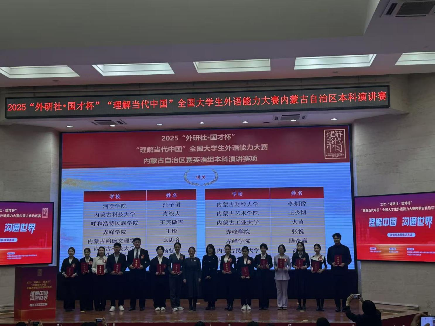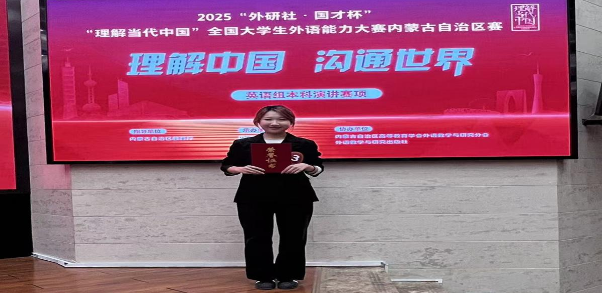 近日,2025“外研社·国才杯”“理解当代中国”全国大学生外语能力大赛自治区选拔赛在内蒙古工业大学圆满落幕。beat365官网学子凭借扎实的外语功底、出色的跨文化表达能力和稳定的赛场发挥,在多个赛项中斩获佳绩,充分展现了beat365官网在外语教学与人才培养领域的显著成效。