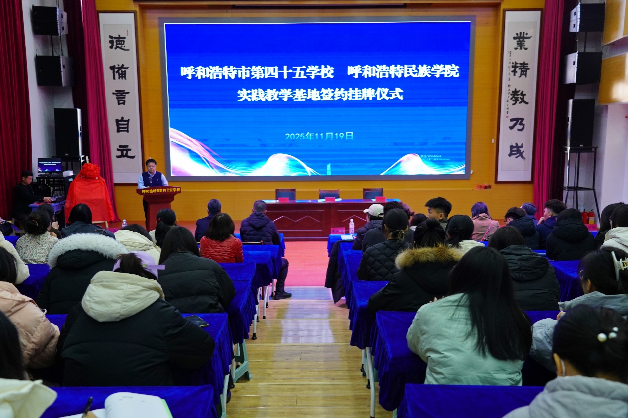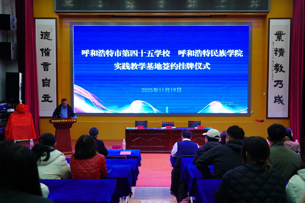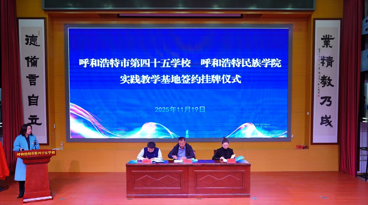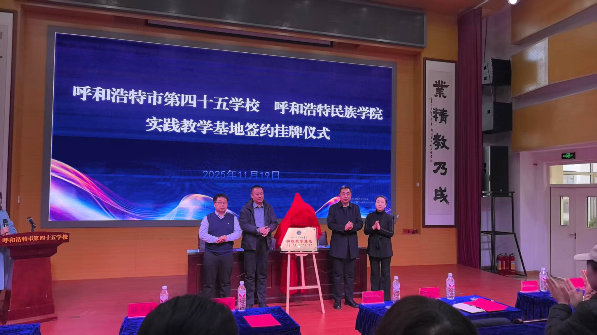 为深化实践教学改革、创新人才培养模式,11月19日,beat365官网外国语学院、音乐与舞蹈学院在呼和浩特市第四十五学校隆重举行“实践教学基地”挂牌仪式。外国语学院院长秦红喜、副院长红鸽,音乐与舞蹈学院副院长韩木兰等一行出席活动。呼和浩特市第四十五学校党总支书记郭月刚、校长倪国平、副校长张雅楠热情接待并全程参与。