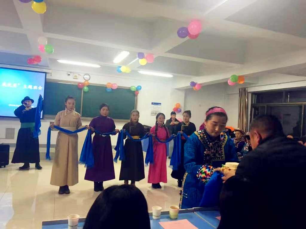 班会在阿斯罕、乌云格日乐等同学的《祝福语》中拉开了帷幕。本次班会分为两个环节,第一环节以“评估”和“学生手册”相结合进行了知识竞赛,七个小组经过两轮的激烈比拼,赛出了团队协作和拼搏精神;第二环节为才艺表演,歌曲、长篇朗诵、舞蹈、民族风走秀等节目轮流上演、异彩纷呈,充分展现出了当代大学生的精神风貌和民族特色。节目最后,对表现突出的团队和个人进行了颁奖。