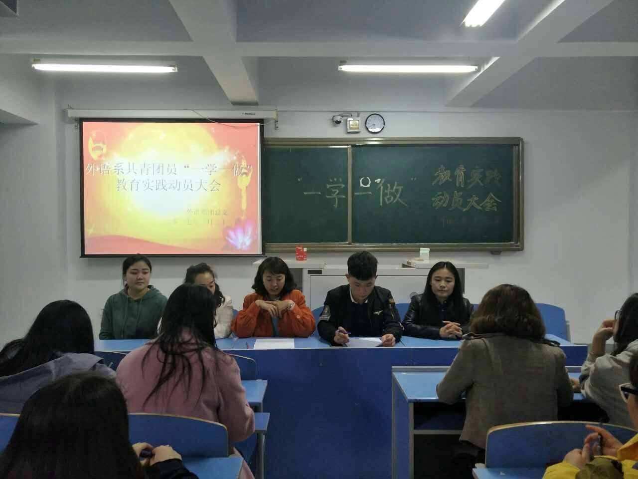 首先,外语系团总支负责人王老师强调各班团支部要认清自己的职责、把“一学一做”教育精神落实到班级每位团员,要求共青团员认真学习《团章》并结合外语系共青团工作实际,加强团组织建设、开展好教育实践活动向全系团支部做了动员部署。其次,学生会主席宣读了外语系共青团员“一学一做”教育实践方案,对全系共青团员制定了以“学习总书记讲话,做合格共青团员”为主题2017学年度教育实践活动计划。最后,外语系团总支负责人王老师号召共青团员要自觉向党中央看齐,向习总书记看齐,鼓励大家努力学习,以优异的成绩迎接党的十九大胜利召开。