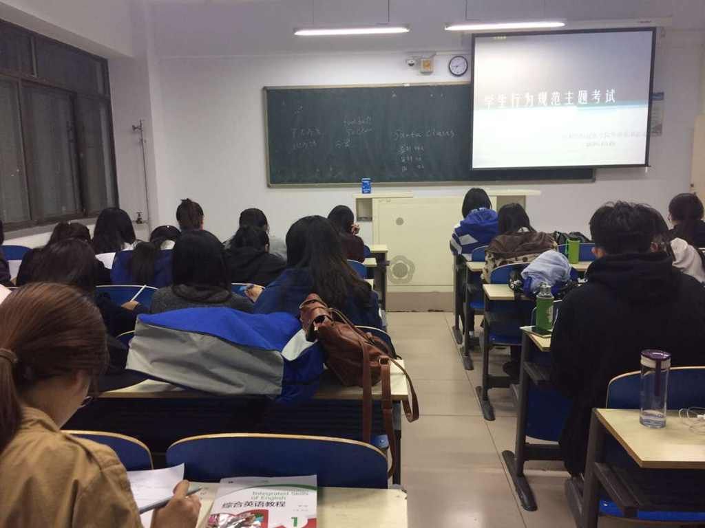系列活动之一,外语系2016级全体学生在都林楼举办“倡文明之风,践文明之行”主题“学生行为规范”手册考试;系列活动之二,于10月25日晚都林楼109教室进行“迎评促建”学生干部座谈会。通过系列活动,学生对“心系本科评估、情牵学校发展”有了更深的理解。