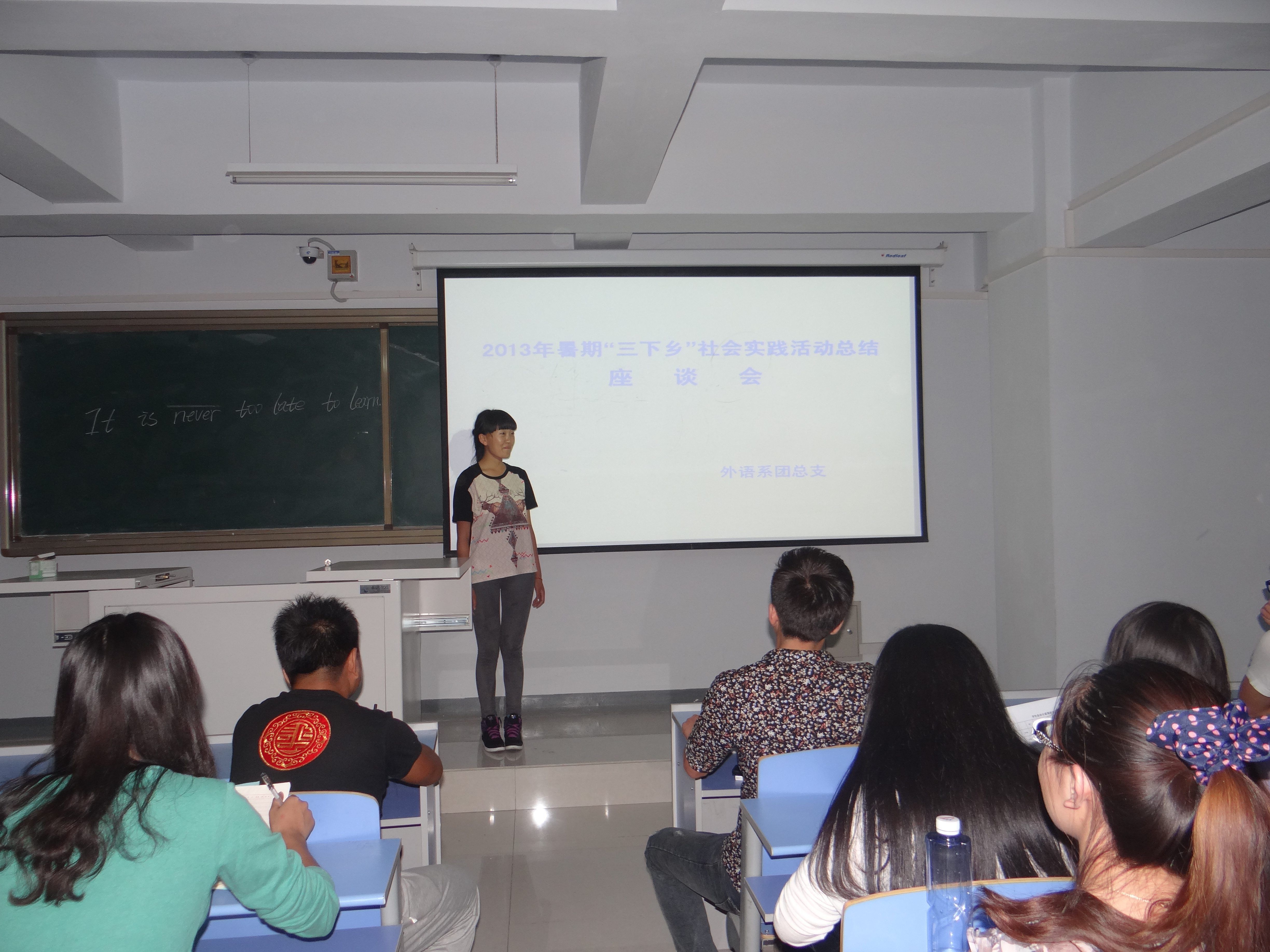 为巩固暑期大学生“三下乡”社会实践工作成果,2013年8月28日晚7:40,团总支组织召开了集中实践和分散实践代表暑期社会实践活动总结交流座谈会,广泛了解了同学们参予实践活动的收获及感悟,为今后开展好社会实践工作夯实了基础。