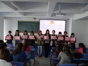 包仓首先宣读了《外语系关于五四表彰的决定》,对在2012年团学工作中表现突出的先进集体及个人给予表彰。其中,授予12级小学英语教育1班团支部等4个团支部为“五四先进团支部”称号、青年志愿者大队等3个社团为“优秀学生社团”、银江等23名同学为“优秀共青团干部”、崔凯丽等17名同学为“优秀共青团员”、钟东雪等10名同学为“优秀青年志愿者”、孟红霞等11名同学为“优秀社团工作先进个人”,并向受表彰的集体及个人颁发了荣誉证书和奖品。