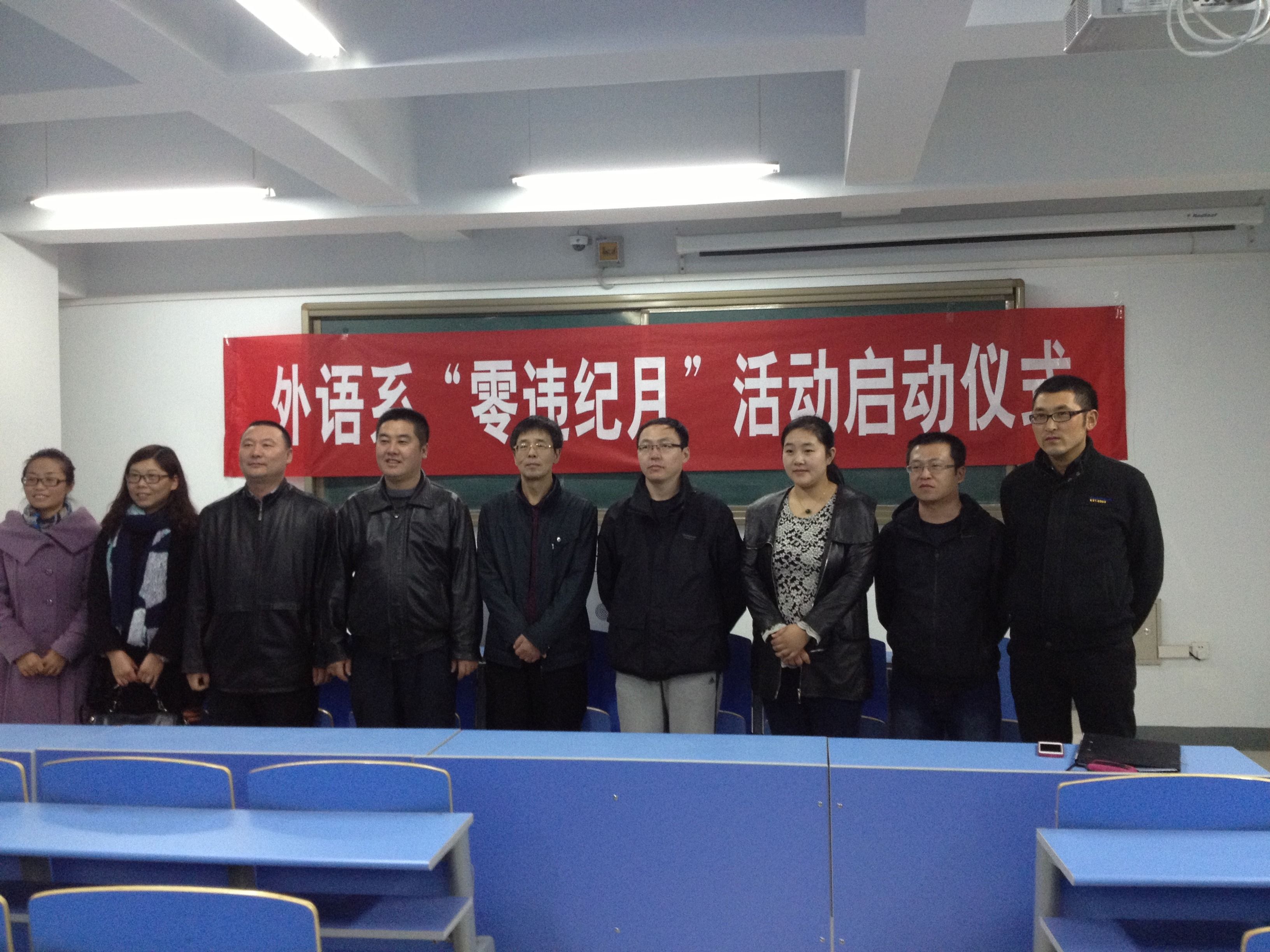 为配合学院开展好“零违纪月”活动,外语系团总支于2013年3月11日晚7点组织全系学生、各班班主任召开会议,正式启动了外语系“零违纪月”活动。学生处副处长朝格吉乐图出席了启动仪式。