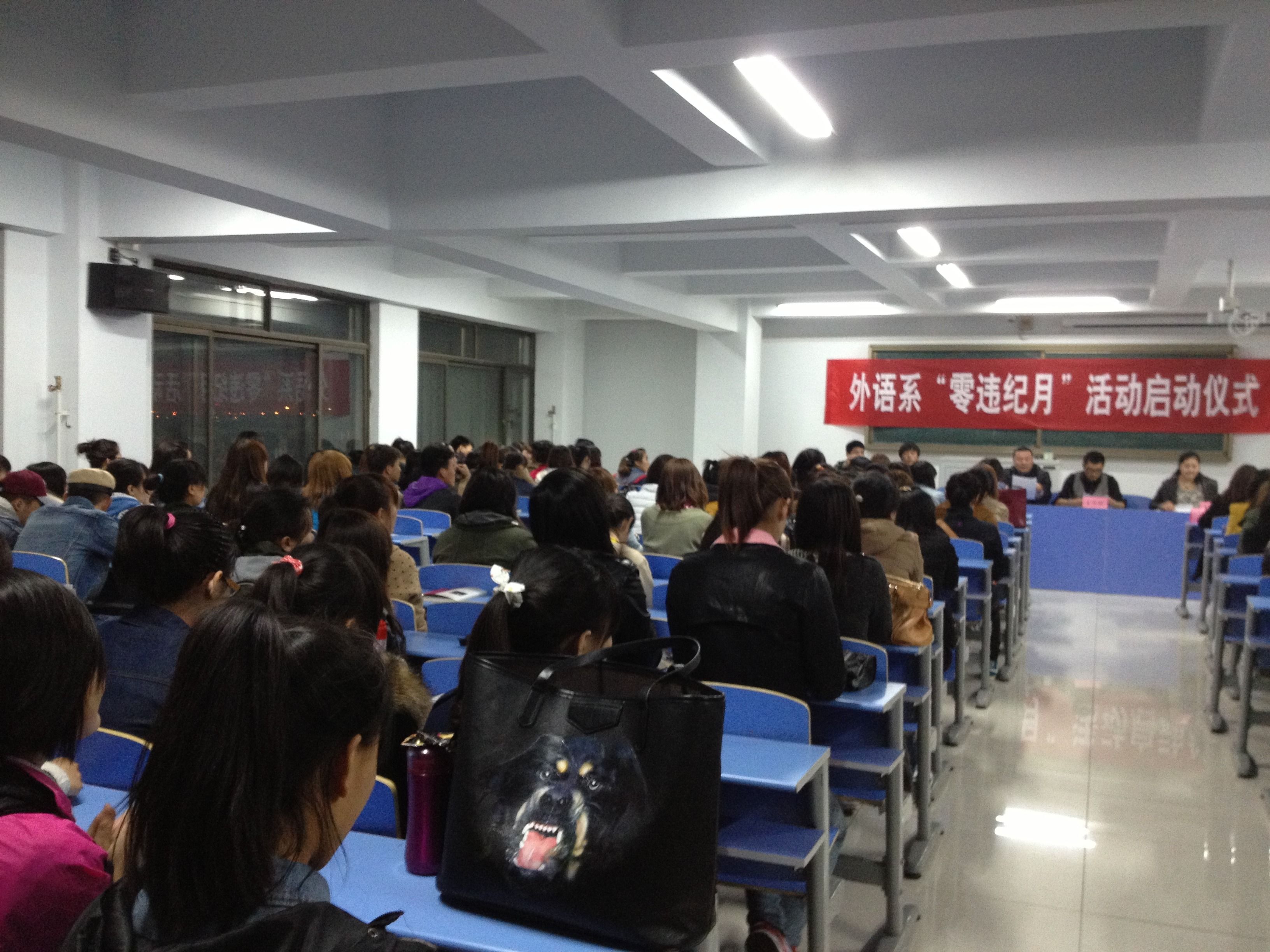 仪式上,团总支干事高帆宣读了外语系“零违纪月”活动方案,向在场师生明确了本次活动的目的、教育内容、具体措施及活动要求,并组织各班主任、各班学生签写活动承诺书。外语系“零违纪月”活动就此拉开帷幕。