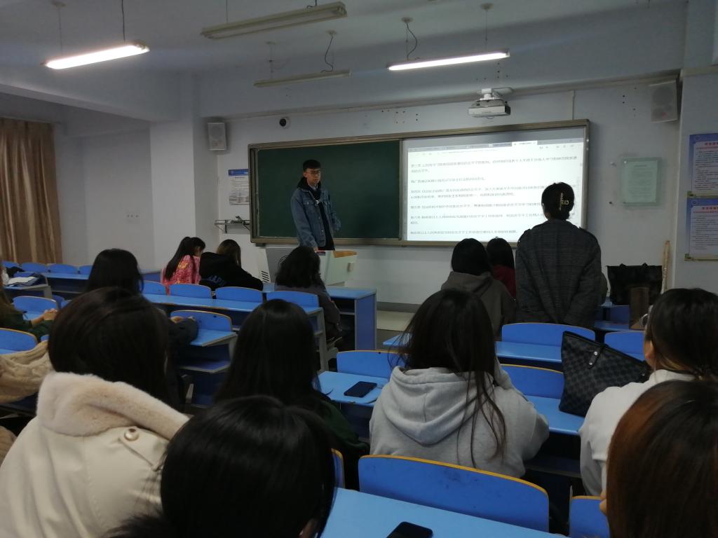 为进一步深化党史学习教育,引导学生从党的思想中汲取智慧和力量,强化党章党规党纪意识,锤炼忠诚干净政治品格,外国语学院学生党支部于2021年11月4日在都林楼607教室开展“学党史 感党恩 跟党走”主题党日活动,全体学生党员参加此次活动。