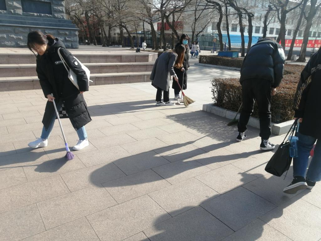 活动伊始,工作人员根据参加活动人数以及需要清理场地的范围进行了明确的分工,同时对一些活动细节问题进行了详细说明。党员志愿者们明确目标后紧接着进入工作状态,相互配合,认真地清扫校园。虽然天气寒冷,但是志愿者们脸上都洋溢着笑容,深刻体会着奉献精神所带来的成就感。经过党员志愿者们的辛勤劳动,清扫过后的校园焕然一新,再次展现出盎然生机。