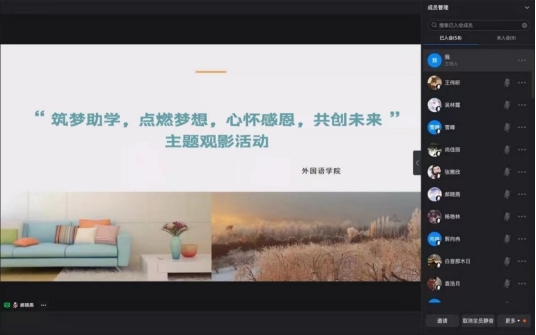 为进一步加大学生资助政策宣传力度,助力巩固拓展教育脱贫攻坚成果与乡村振兴有效衔接,激励受助学生奋发自强、立志成才、感恩奉献,外国语学院于5月28日—5月31日线上举办“助学筑梦,点燃梦想,心怀感恩,共创未来”主题观影活动。本次活动由学院资助工作负责人王春梅老师主持,学院全体受资助学生参加。