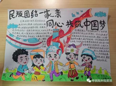 为全面贯彻党的民族政策,深化民族团结进步教育,铸牢中华民族共同体意识,外国语学院于9月23日举办“民族一家亲”手抄报比赛,通过创作手抄报的形式引导学生了解各民族的特色文化、风俗习惯,加深各民族学生对其他民族文化的了解,增进彼此感情,引导学生树立正确的国家观、历史观、民族观,增强学生对中华民族的认同感和自豪感。