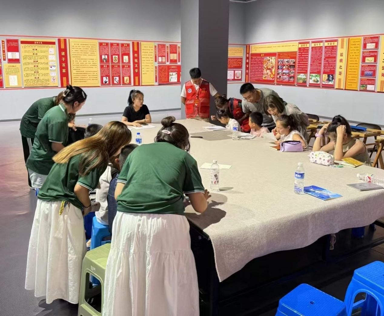 活动当天,志愿者们充分发挥自身优势,为“小小解说员培训班”的学员们带来了生动有趣的生子识读、普通话发音技巧、语言表达。志愿者们通过互动式教学,激发了孩子们对语言学习的兴趣。在随后的交流环节中,博物馆宣教部负责人陈老师对志愿队的到来表示热烈欢迎,并高度赞扬了志愿者们的专业素养和奉献精神。双方就如何进一步深化合作,共同推动科右中旗地区国家通用语言文字的普及和乡村文化振兴进行了深入探讨。