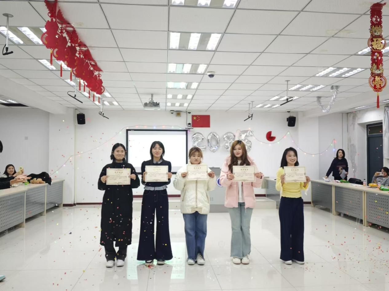 活动伊始,网宣部的舞蹈串烧活力四射,表演者们用灵动的舞姿点燃了现场气氛。紧接着,“你比我猜”游戏开启了欢乐互动环节,现场笑声不断。权益部的歌曲弹唱《晴天》悠扬动听,而后的“方言传话”游戏更是趣味横生,大家用各地方言传递话语,在欢乐中让大家感受到了语言文化的多元魅力。文体部的合唱《恭喜发财》充满喜庆氛围,“抢凳子”游戏将活动推向高潮。现场气氛热烈,充分展现了同学们的反应能力和竞争意识。办公部的歌曲《身骑白马》深情婉转,“谁是卧底”游戏则充满了悬疑与推理。社团部的歌曲《我怀念的》引人共鸣,“胡辣汤”游戏考验着参与者的反应速度和团队协作,大家全神贯注,按照指令迅速下蹲,现场一片欢声笑语。组织部的配音节目《喜羊羊与灰太狼》惟妙惟肖,最后的“emoji 猜成语”游戏中,各部门代表争分夺秒抢答,在紧张的氛围中丰富了大家的成语知识储备。最终社团部获得一等奖,权益部和组织部获得二等奖,网宣部、文体部与办公部获得三等奖。