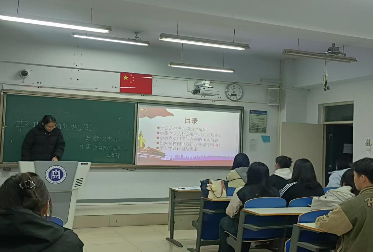 为深入学习贯彻习近平总书记关于加强党的作风建设的重要论述,进一步增强学生党员的纪律意识和规矩意识,外国语学院学生第一、二党支部于2025年3月27日至3月28日举办了为期两天的深入贯彻中央八项规定精神学习教育专题读书班,目的引导党员学生深刻领悟中央八项规定精神的重大意义,切实将作风建设落到实处。