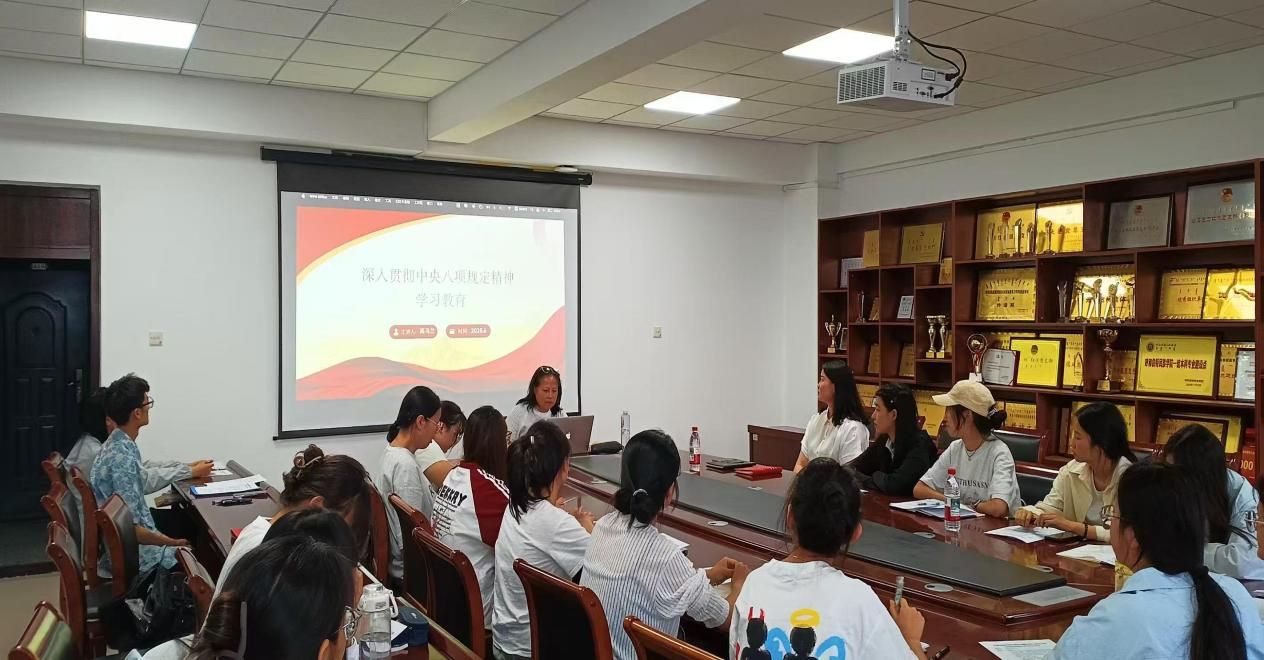她要求全体学生党员要深刻领会八项规定的精神实质,把遵规守纪内化为日常工作学习和生活中的自觉行动,切实增强贯彻落实的思想自觉和行动自觉。