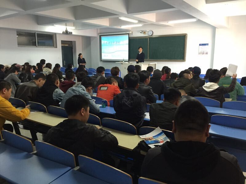 招聘会上,日本语言学校顾问屈真人先生通过播放短片、讲述自身经历、讲述学校教学、就业特色、面对面交流等方式详细向同学们介绍了职业发展方向以及招聘人员要求。同时,日本语言学校顾问对同学们提出的薪资待遇等各方面问题进行了一一详细的解答。