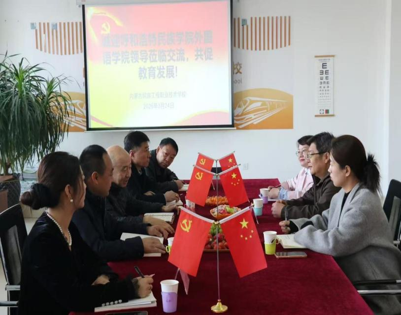 为进一步拓宽学生就业渠道、挖掘优质就业岗位,3月24日上午,外国语学院党总支书记朱俊杰、副书记包桂英一行,先后赴内蒙古民族工程职业技术学校、内蒙古哈森职业专修学院及内蒙古学慧教育咨询有限公司开展访企拓岗专项活动。
