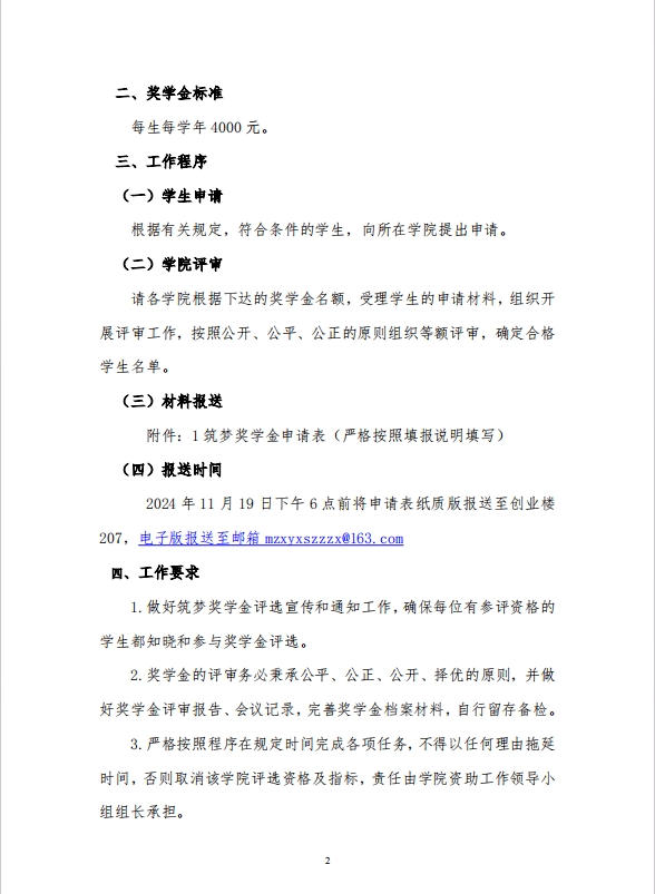 关于开展2024年度筑梦奖学金的通知