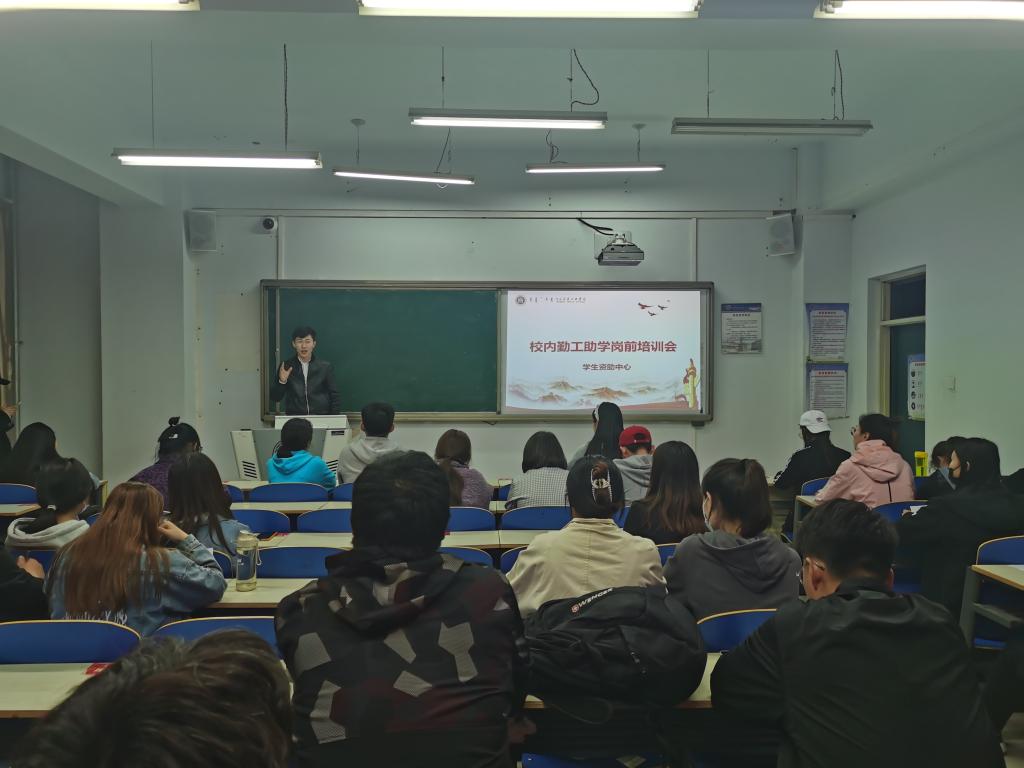 为提升beat365官网勤工助学工作服务水平,增强学生适应能力,提高学生综合素质,培养家庭经济困难学生热爱劳动的意识和自立自强的品质,党委学生工作部学生资助中心于3月25日在都林楼组织召开了勤工助学岗前培训会。会议由学生资助中心额日和木老师主持,全校近60名勤工助学在岗学生参加了会议。