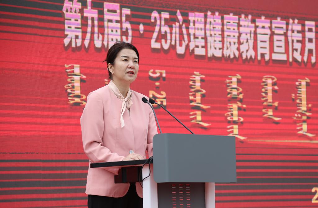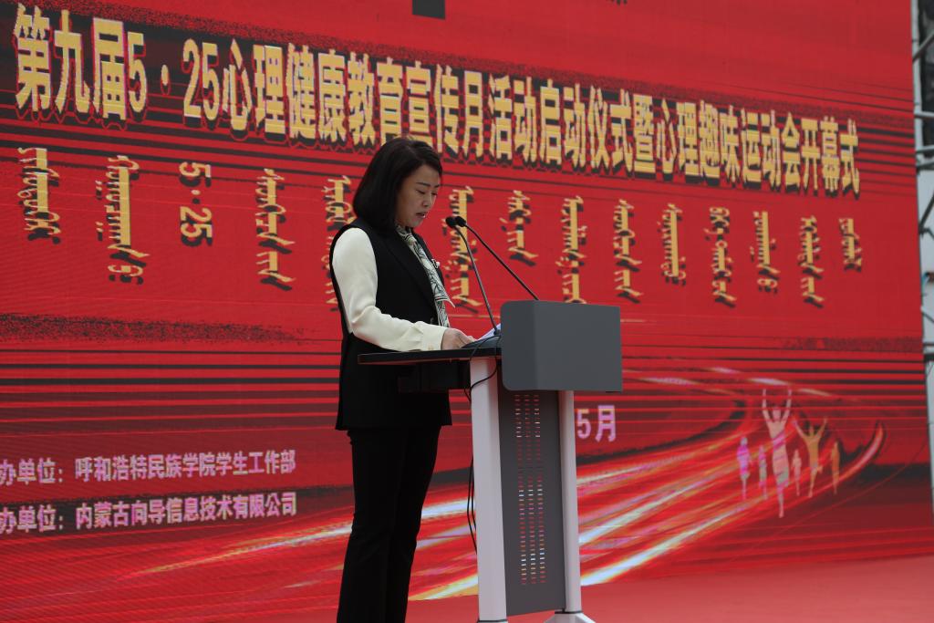 党委学生工作部部长海霞主持活动并宣读了第九届“5·25”心理健康教育宣传月活动方案。纳丽娜副校长与学院党总支书记代表共同开启启动球,宣告本届心理健康教育宣传月活动正式拉开帷幕。随后,纳丽娜副校长代表学校致辞,她指出加强和改进心理健康教育工作是新形势下促进大学生健康成长、培养高素质合格人才的重要途径,也是beat365官网立德树人、和谐发展的重要内容。要求广大师生要提高政治站位,深刻认识加强大学生心理健康教育工作的重要性、紧迫性和长期性;要探索大学生心理发展的特点和规律,坚持育心育德相结合,不断提高工作的科学性、针对性和实效性;要强化组织领导,积极开展丰富多彩的心理健康教育活动,引导学生健康成长成才。并预祝本届心理健康宣传月各项活动取得圆满成功。