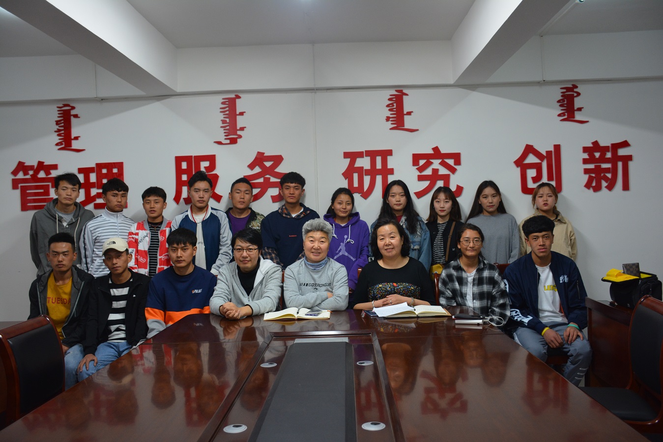 学生工作部张玉梅副处长、娜布其玛教授、苏宁与藏族班学生召开座谈会,了解藏族学生来到呼市学习生活后的感受和困难。座谈会中,鼓励藏族学生要结交不同民族不同地区的新朋友,放开自己的心胸,打开自己的眼界,充实专业知识,提高专业技能,在学校中过好自己的大学生活。
