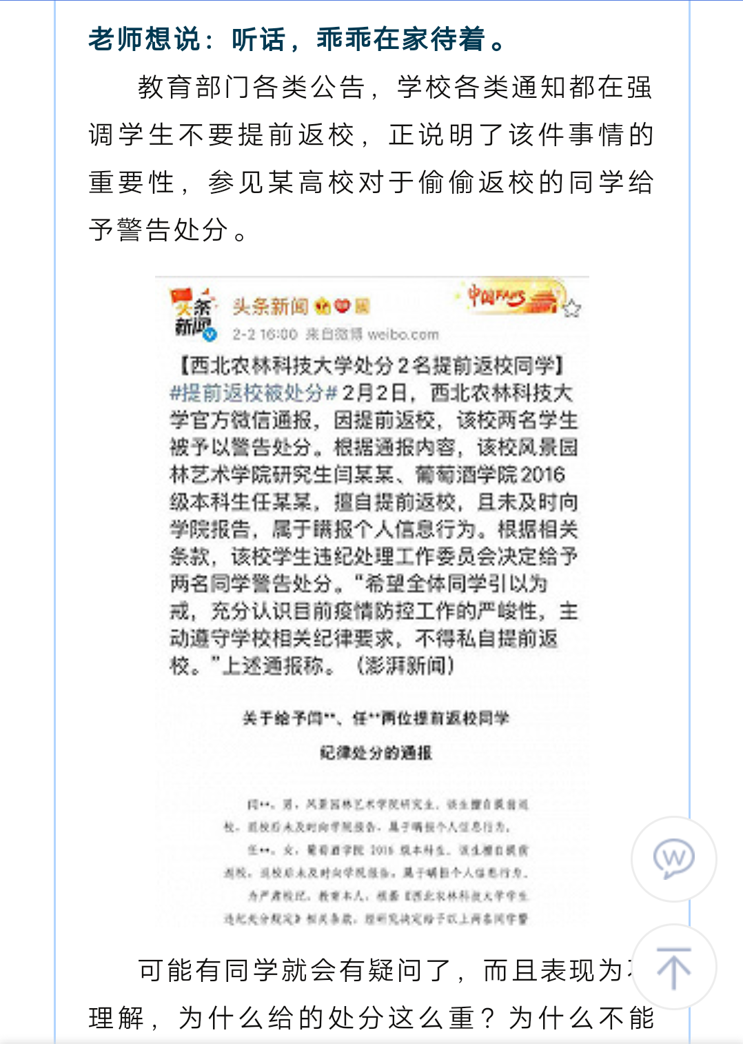 疫情之下:为什么不要提前返校?