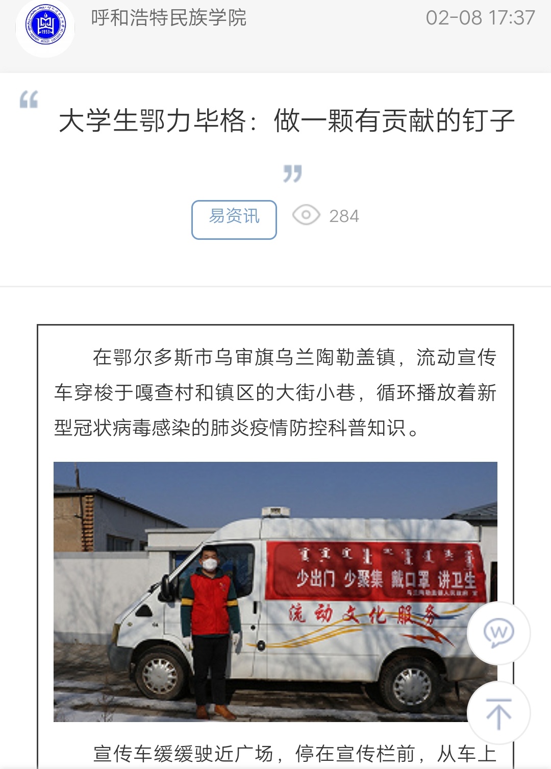 大学生鄂力毕格:做一颗有贡献的钉子