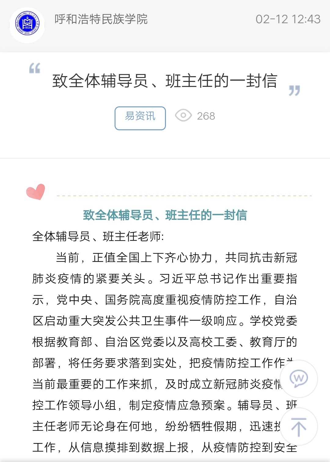 致全体辅导员、班主任的一封信