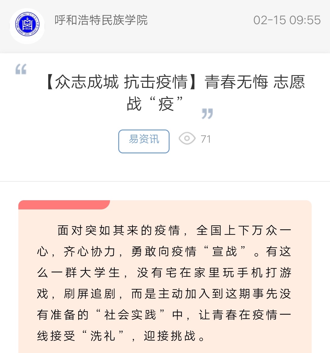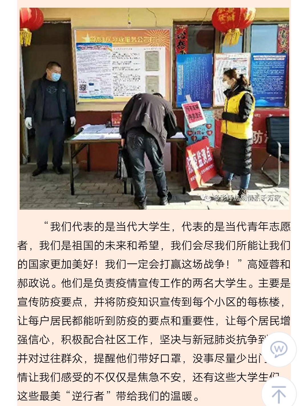 【众志成城 抗击疫情】青春无悔 志愿战“疫”