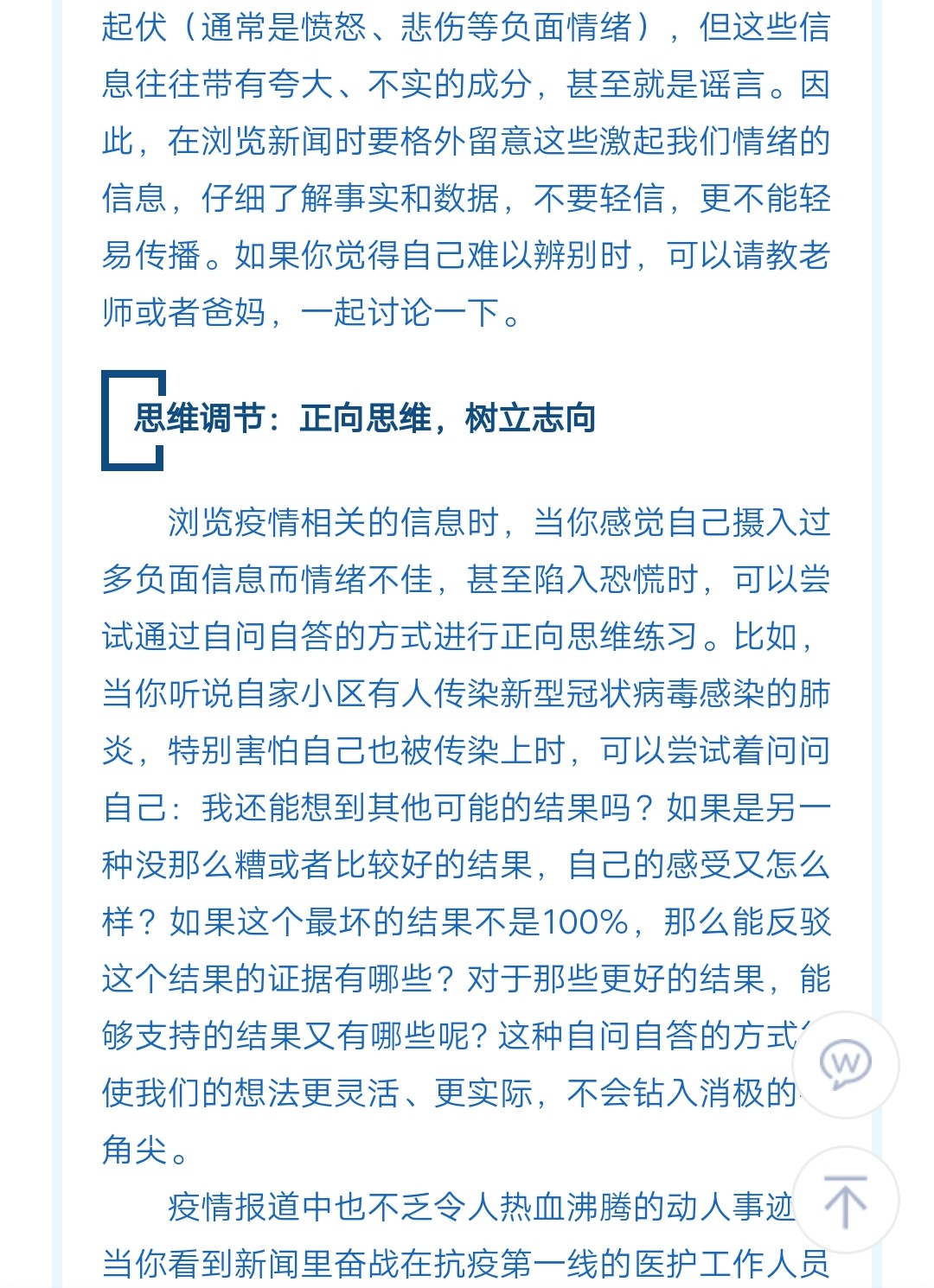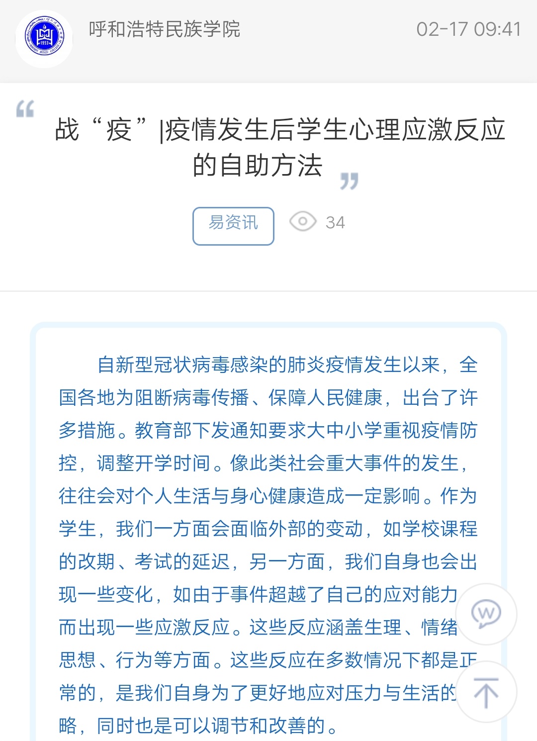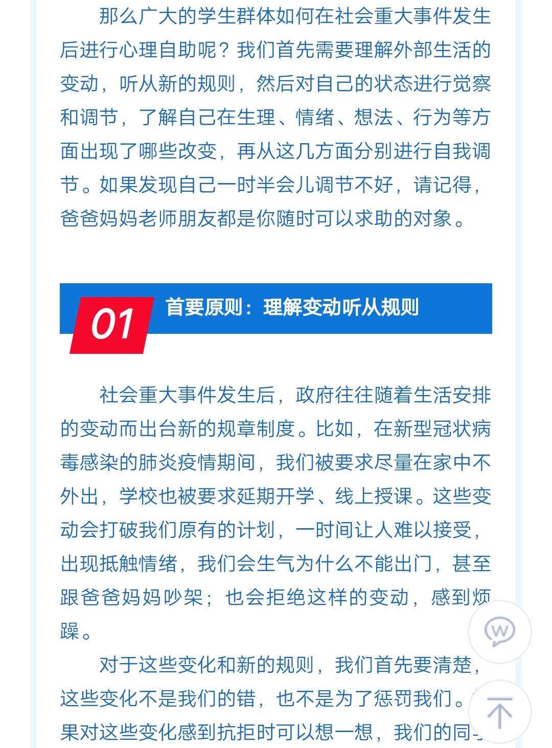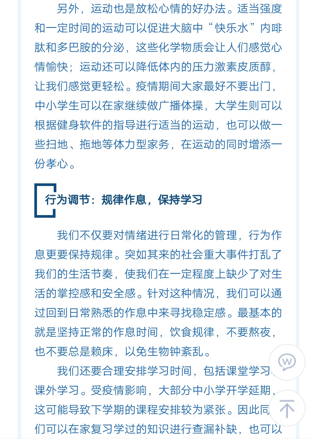 战“疫” 疫情发生后学生心理应激反应的自助方法