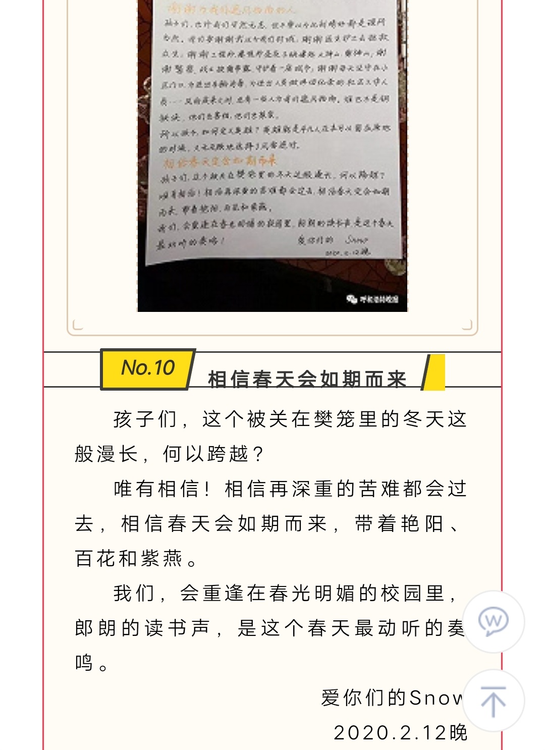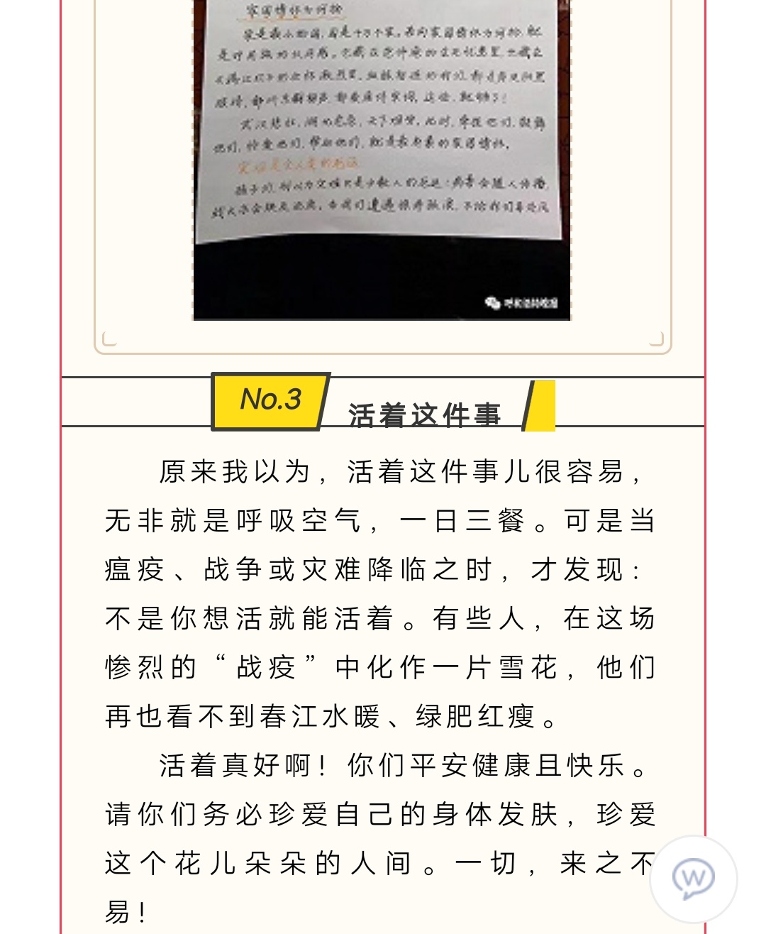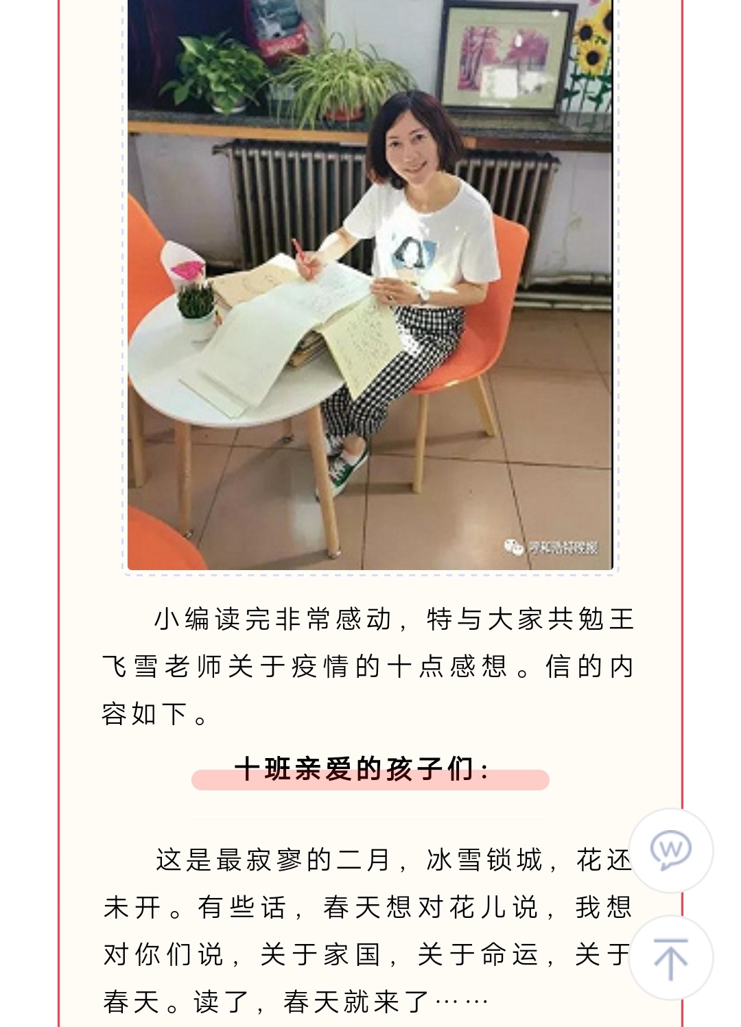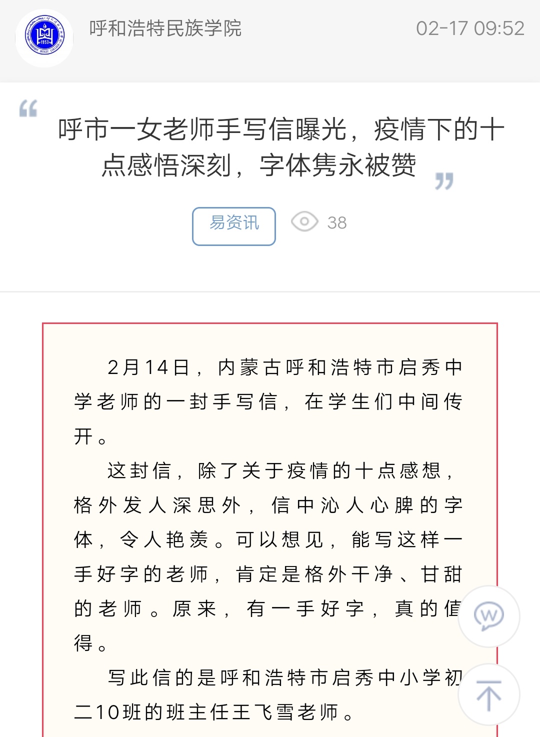 呼市一女老师手写信曝光,疫情下的十点感悟深刻 字体隽永被赞