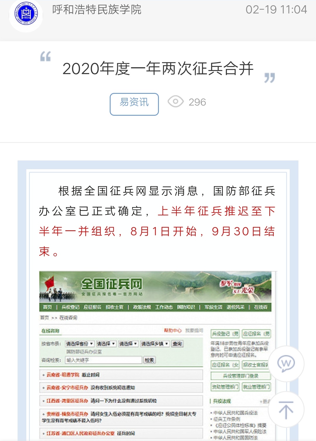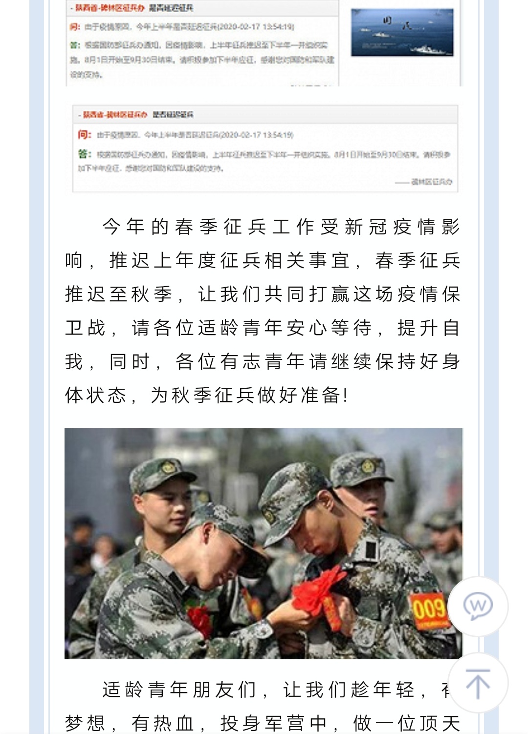 2020年度一年两次征兵合并