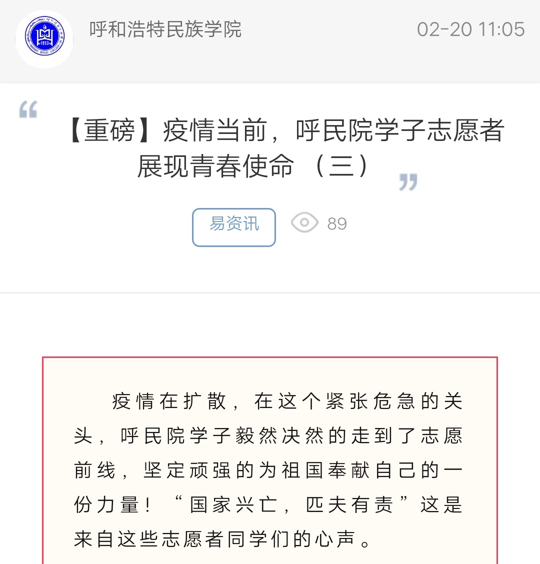 【重磅】疫情当前,呼民院学子志愿者展现青春使命 (三)